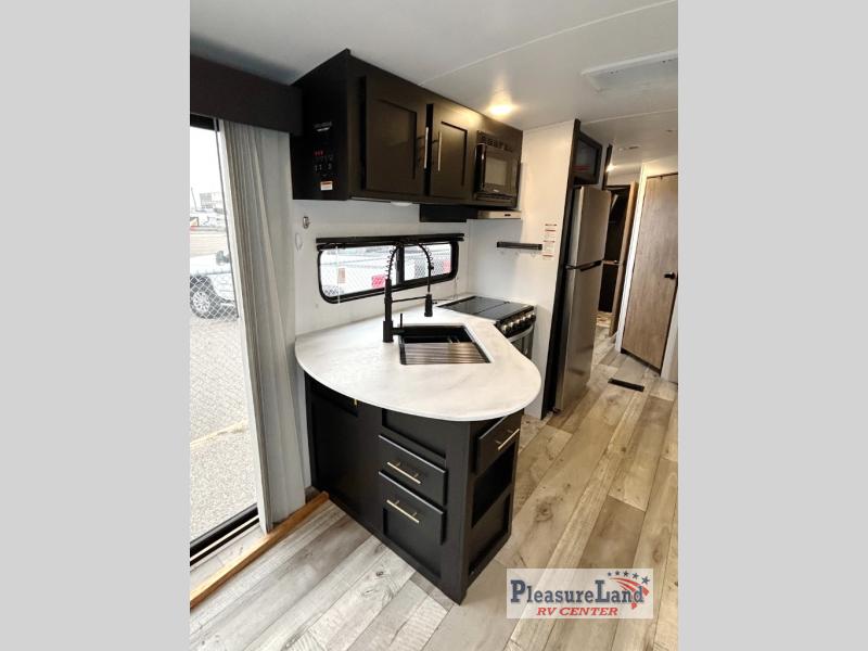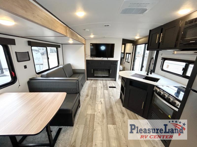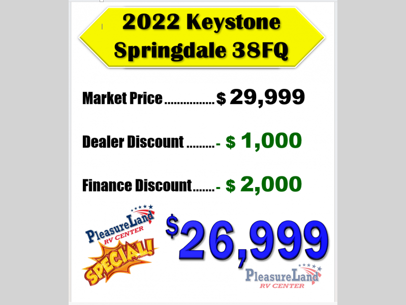 With any Keystone Springdale destination trailer, you will have a fully walkable roof with seamless one-piece TPO roof membrane, a one-piece polypropylene, heated and enclosed underbelly, plus rack and pinion slide mechanism and safety glass functional windows in the slide outs. Some of the Keystone Exclusives provide 12V color-coded wiring with easy-to-trace circuits which is better than conventional RV wiring allowing a faster diagnosis for quicker repairs, and the streamlined heat distribution that uses in-floor heat vents for more efficiency for uninterrupted air flow. Also included, the Blade high performance air flow system that delivers 30% more air flow. The interior gives you a 6'10" vaulted ceiling, designer upholstered window valances, a decorative light over the dinette, pressed kitchen countertops and so much more depending on the Springdale you choose!