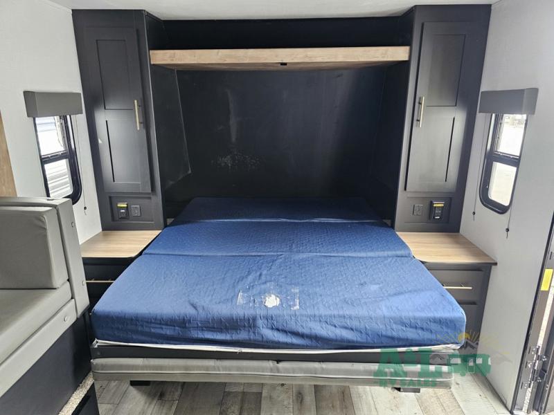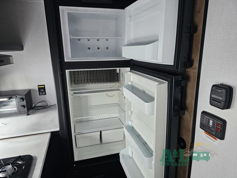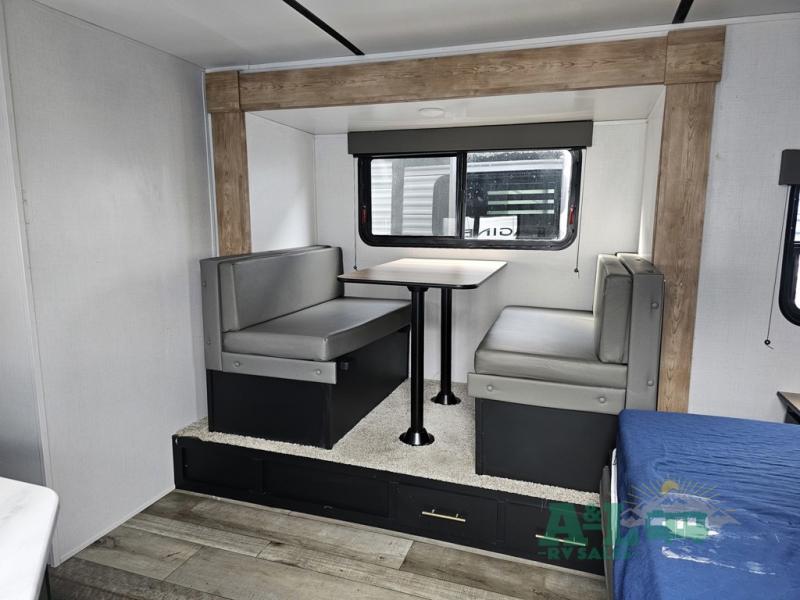Get ready to enjoy the outdoors when you have this Mini at your campsite! You can hike, bike and/or fish all day then return to your own Queen Miller bed with fold down sofa that offers a versatile space. You will also find two closets for your clothing and shoe storage to keep everything tidy. The booth dinette slide gives you drawer storage and a space to dine. And the kitchen allows the cook to whip up hot meals, and the full bathroom will keep everyone refreshed.