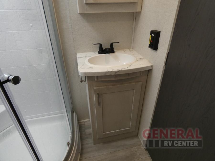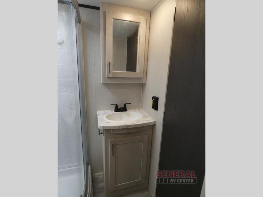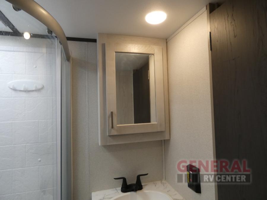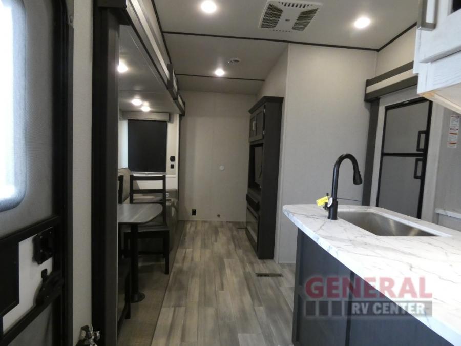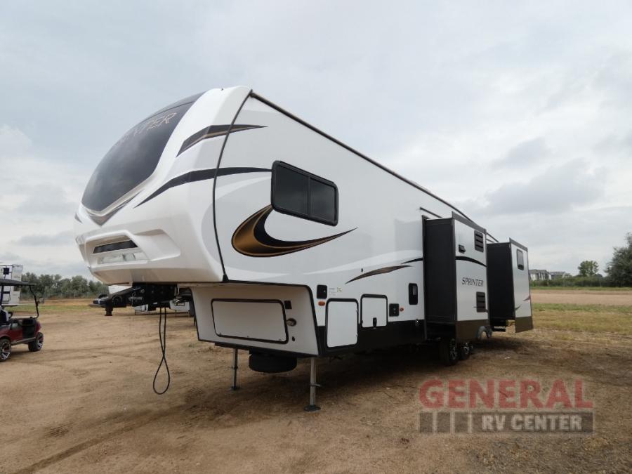 With any Sprinter fifth wheel by Keystone RV, you will have elements of a traditional RV lifestyle, Camping Made Easy features, and more living space, storage and towing stability in this longest-standing brand! The exterior includes a 100" wide-body frame with full width outriggers, MaxTurn technology with Road Armor suspension, Hitch Vision, an automotive-grade painted fiberglass front cap with KeyShield protection, plus the Thermal package and a heated and enclosed underbelly with astro-foil insulation for all-weather camping. There is a wireless remote control for slideouts, lights, awning and more, Thomas Payne theatre seating with USB, lights and massage, plus woven flooring that is highly durable marine-grade flooring for easy cleanup after a fun trip. Make your selection today!
