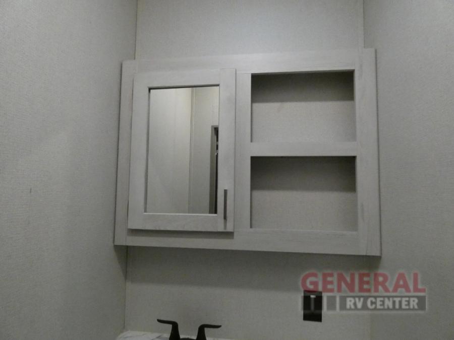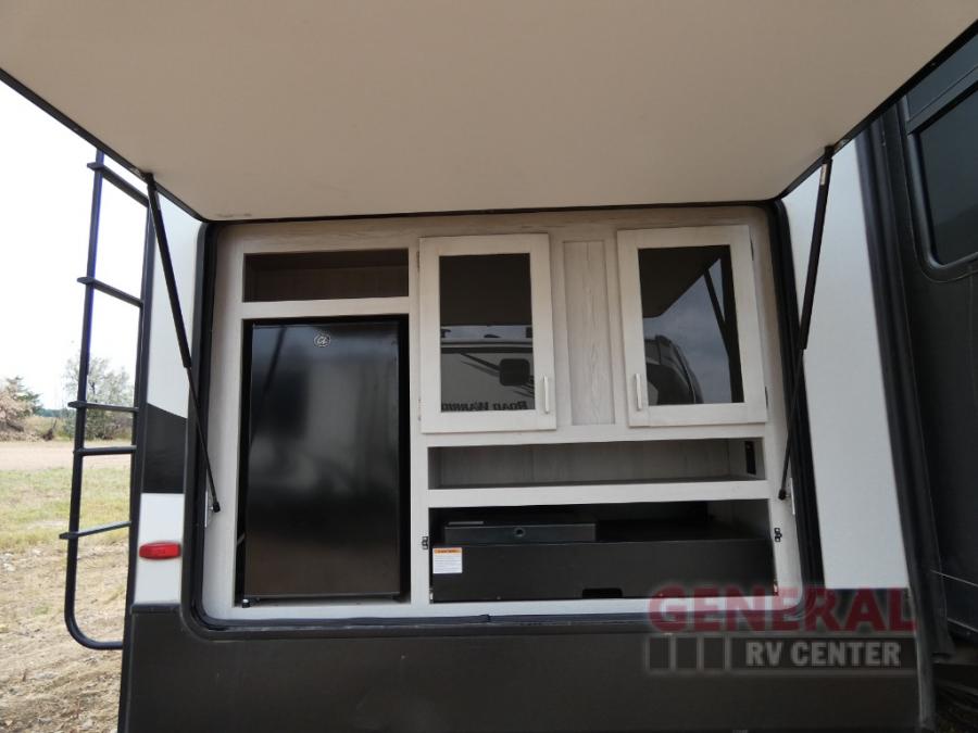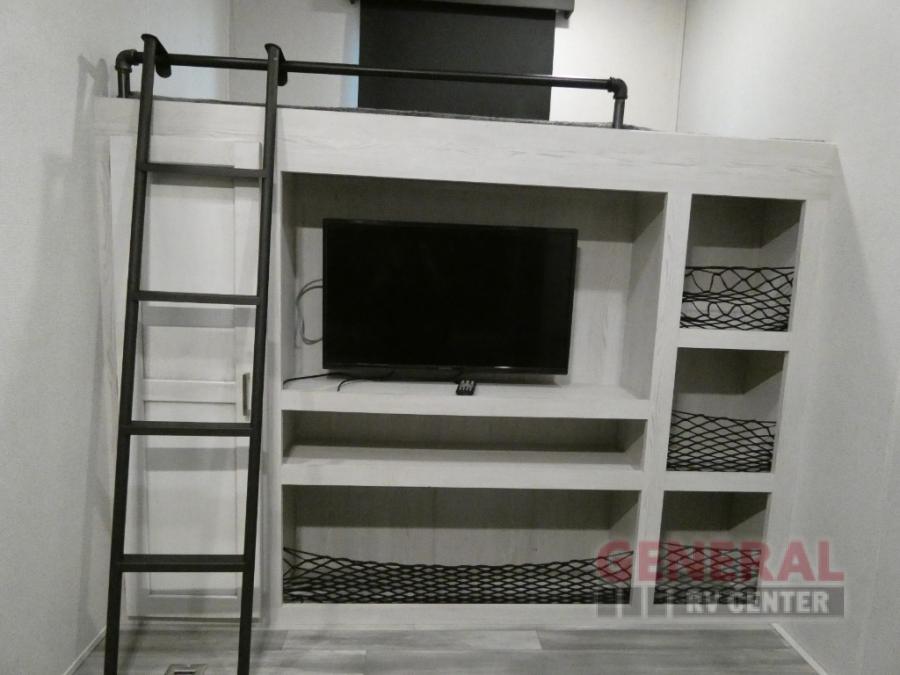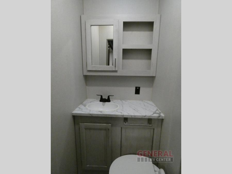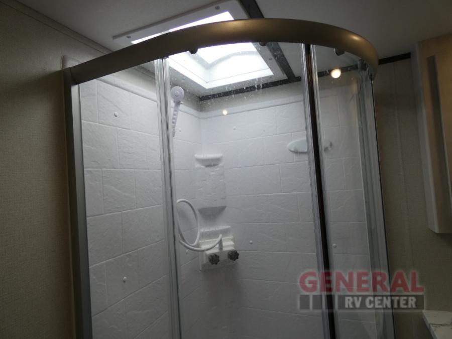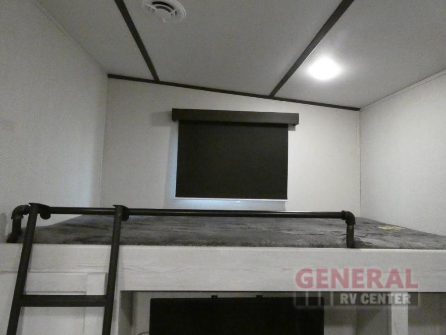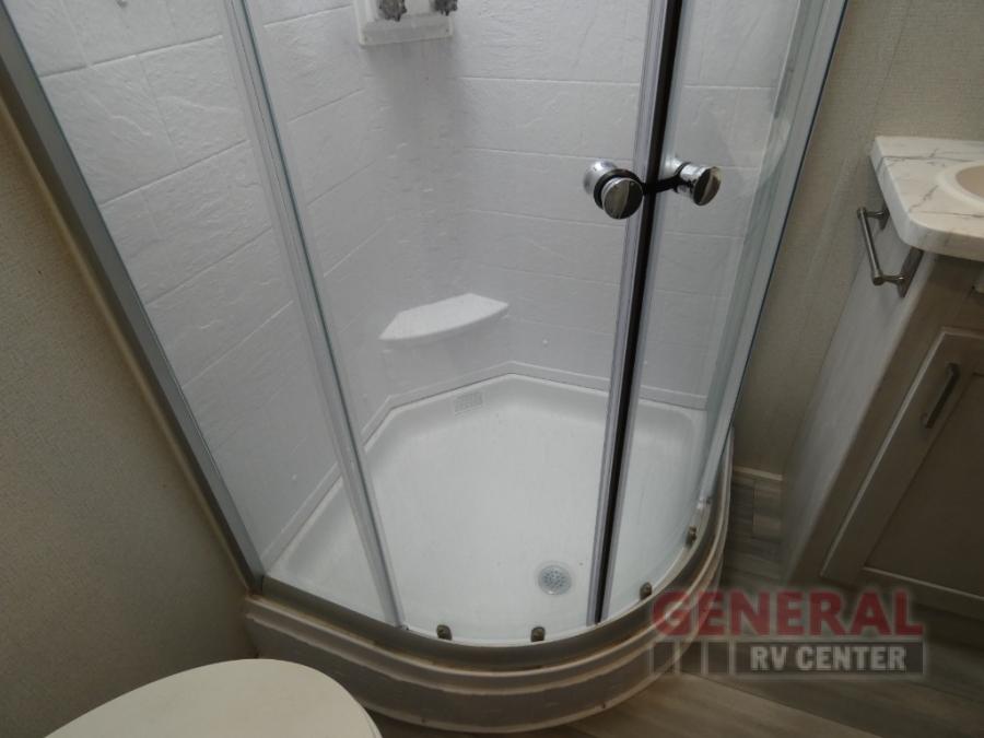 Explore new scenery with this fifth wheel at every campsite you have been wanting to visit! You can hike, fish or whatever you enjoy doing outdoors, and then relax and unwind inside with features that make you feel right at home. Beginning with the kids or your guests having their own privacy in the bunkhouse suite which includes a half bath, a slide out sleeper sofa with storage and a bunk above plus a second bunk. You will have a residential queen bed to sleep on in the front bedroom which also has two nightstands and outlets to keep your electronics charged, plus access to the full bathroom with a space savings radius shower. The kitchen and living area are spacious as well with two slides which include the three-burner gas range with glass top and 21" stainless steel oven, extra prep area, and a peninsula countertop with a single-basin stainless steel industrial sink to keep everything clean, plus the full reclining theatre seats with massage, lights and USB, and the free standing dinette. And the exterior offers the cook an outdoor kitchen with a premium convenience center, plus you will enjoy the protection from the 15' electric awning, and the many more features inside and outside for convenience and comfort!