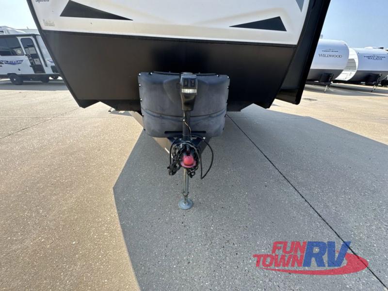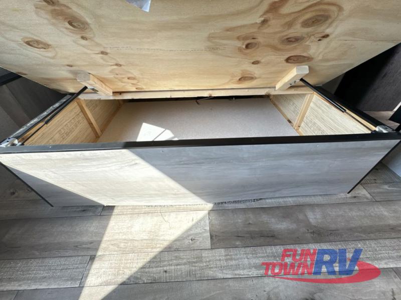 The KZ Connect travel trailer comes with an RV Airflow System which optimizes the airflow for your air conditioner by increasing the airflow by an average of 40%. This improves performance, speeds up cooling times, and reduces noise in your trailer. Some of the other helpful features found on the Connect are the heated, insulated, and enclosed underbelly, the exterior docking station, the fiberglass front cap with front windshield, the 82" interior ceiling height, and the protective front diamond plate. There are some useful technological features, like the two LED motion-sensor lights, the HDMI and USB charge, OneControl monitor panel, and the multi-media entertainment system with DVD. The KZ Engage is powered by OneControl, and it monitors battery levels and controls slide rooms, the leveling system, the awning, inside/outside lighting, and the TPMS prep.