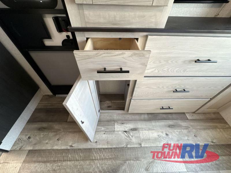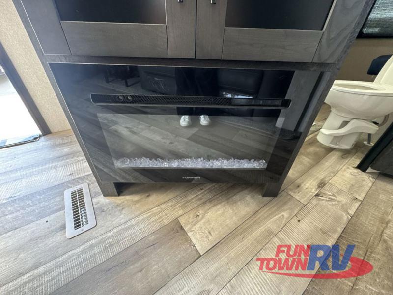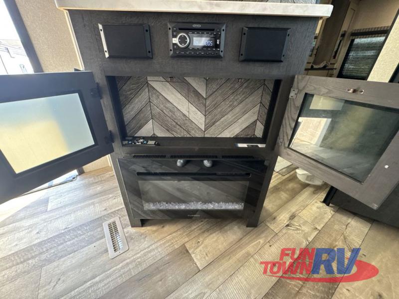 You can use this Connect travel trailer whenever you want to get away! You will remain comfortable each night sleeping in the rear master suite, and this bedroom area even has the second exterior entry door so that you can slip out for your morning run easily. The front kitchen has a full-width countertop for lots of extra space to chop veggies and prep meals, and the large slide in the main living area holds the booth dinette and 70" sofa. These pieces of furniture rest across from the fireplace for a cozy evening with a cup of coffee, and there is a walk-in pantry where you can grab snacks.
