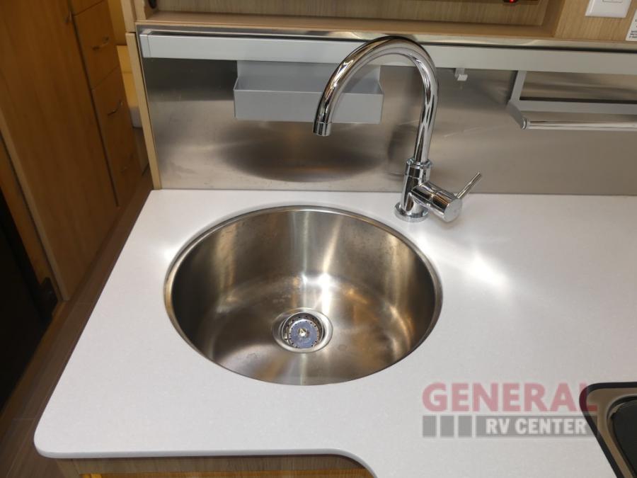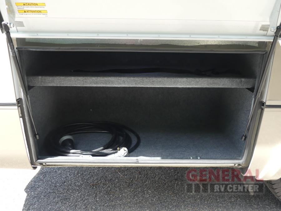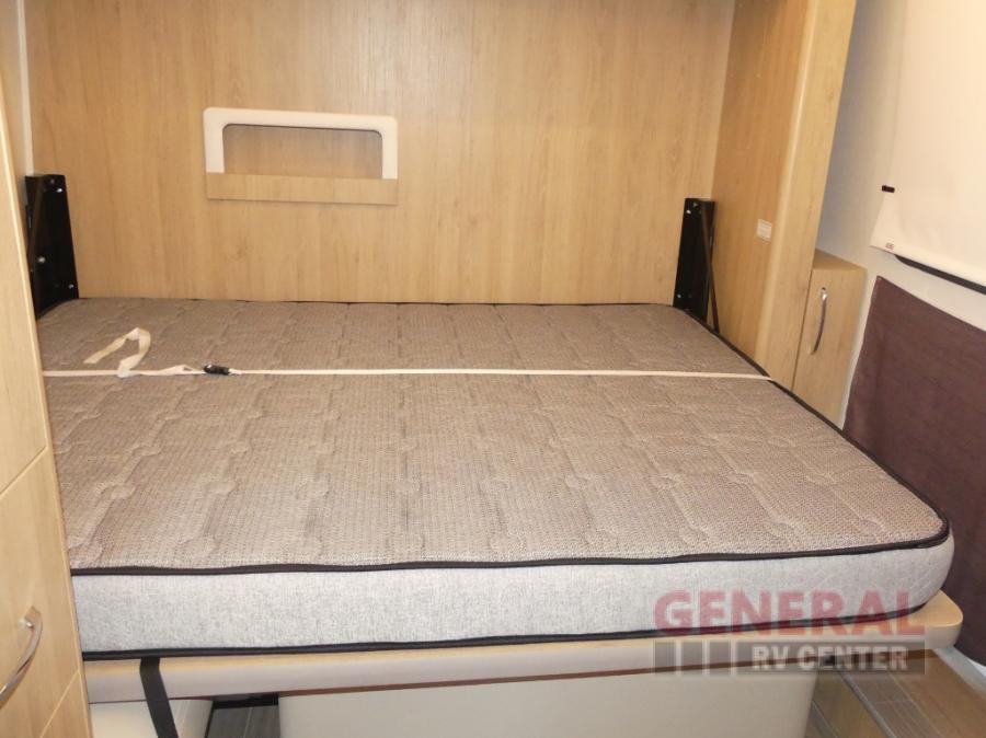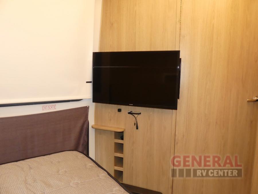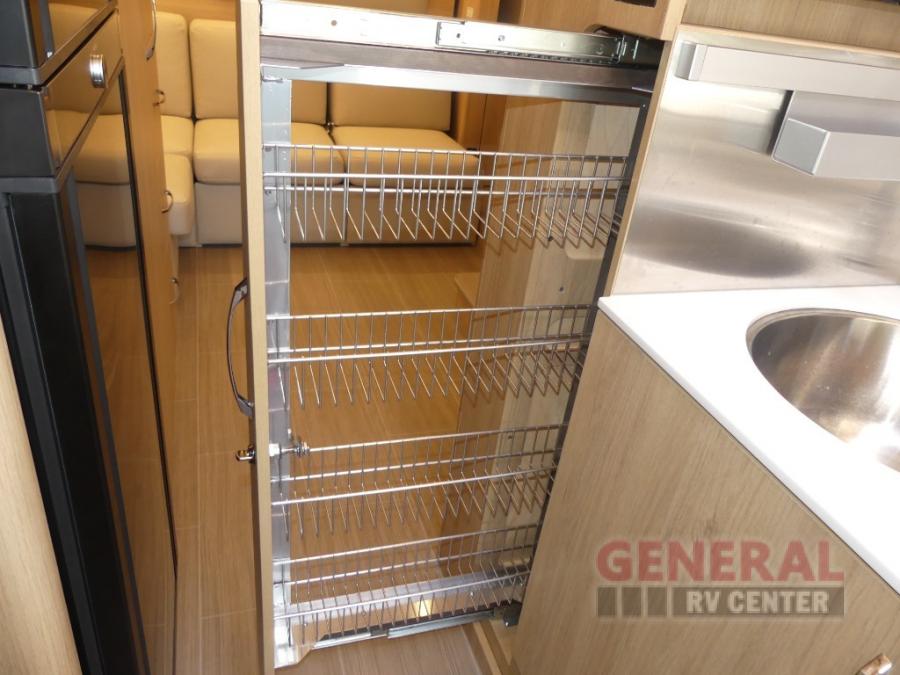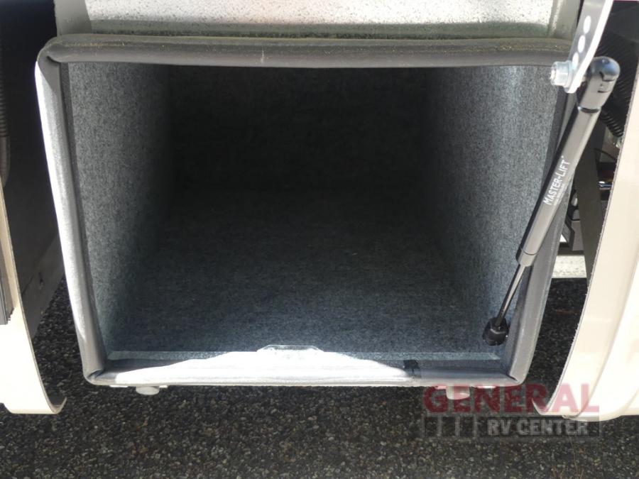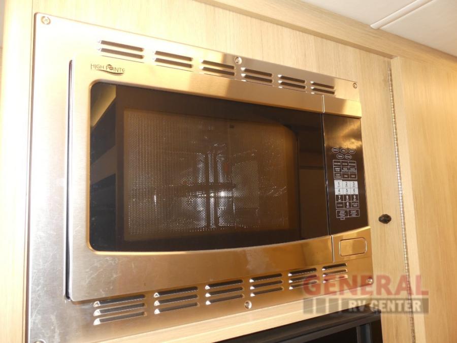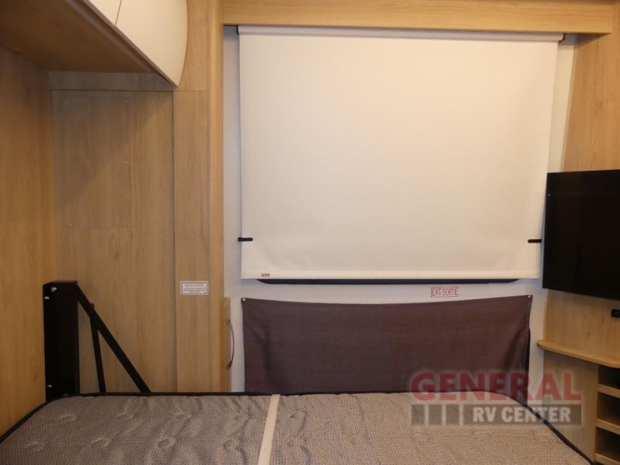 You will enjoy the two distinct living spaces with this Unity Class B+ diesel motorhome as you travel to all of your favorite locations. The dinette in front serves for dining and sleeping when converted into the optional front bed with the use of the front swivel captain's chairs for support. This is the perfect spot for when the grandchildren come along. In back, you will find a comfortable lounge area with a 28" TV for inside entertainment plus a Murphy bed which easily converts the space into a bedroom that can be hidden away in the wall once morning arrives. The stainless steel convection microwave and the large pull-out pantry make it easy to create your delicious meals.