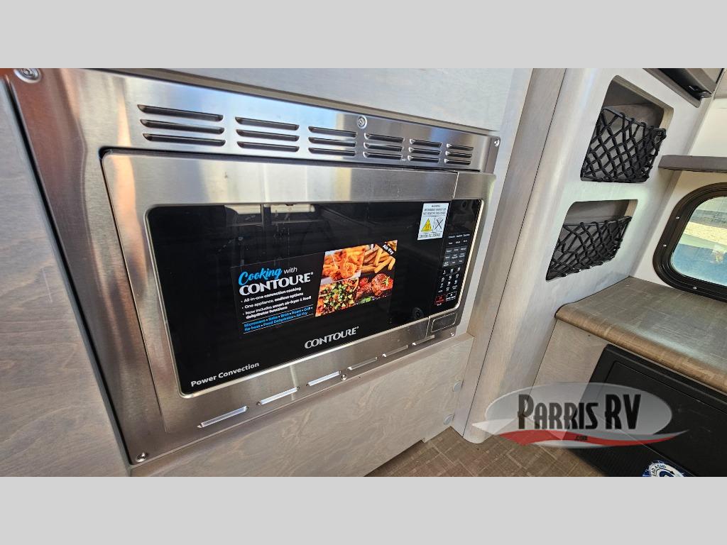 You will find a pass-thru window on this Cirrus truck camper. The exterior has a Maggie roof rack for bringing along extra gear, and there is a motorized 8' side awning to protect you while you're living life outside. The convection microwave/oven is going to make your meal prep easier and faster, and the air conditioning will keep this camper's interior at a desirable temperature even when it's hot outside. This model also comes with an HDTV dish and a great sleeping area with the Froli sleep system.