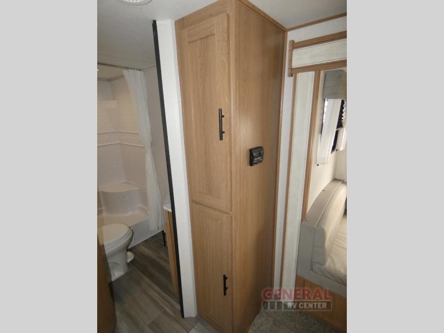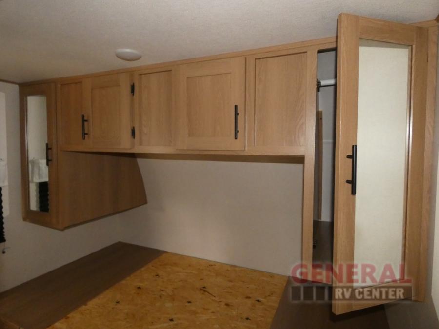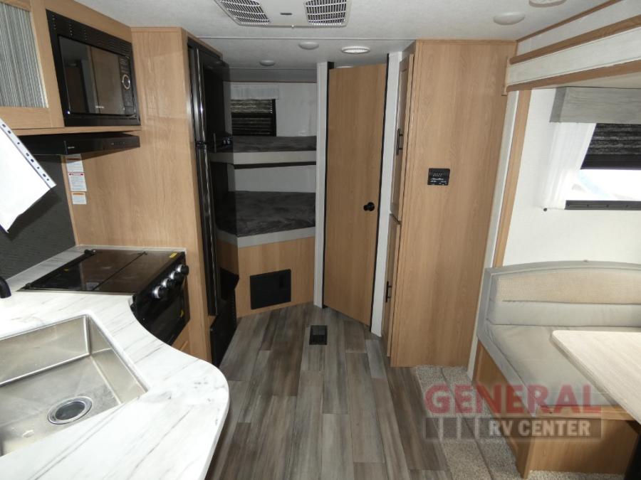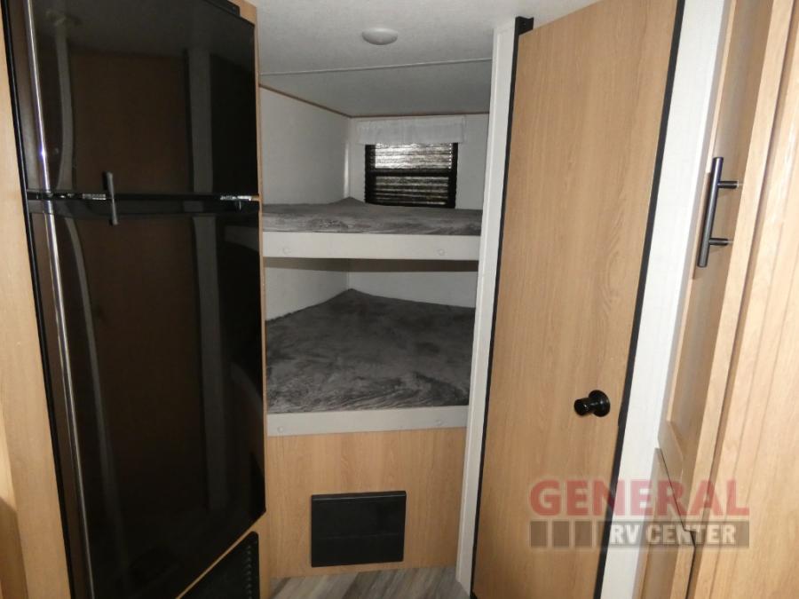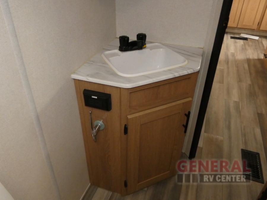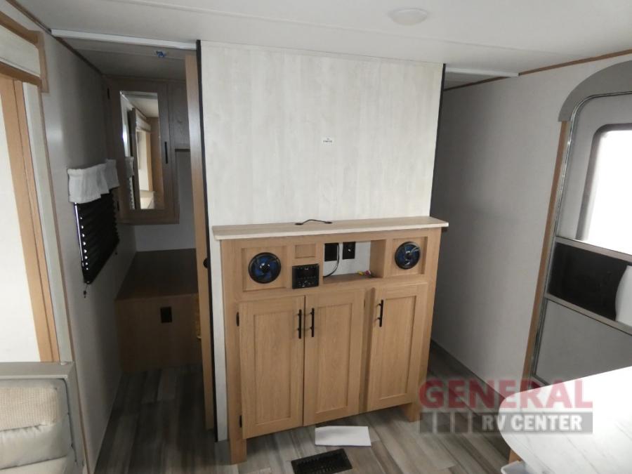 Gather the crew, load up and head out to enjoy a long-weekend at the state park or your main RV park that you like to meet up with friends. This trailer offers sleeping accommodations for eight because of the double-size bunks, the U-shaped dinette, and the queen bed. There is a rear corner full bathroom with a shower curtain on a curved track providing more elbow room. You will find full kitchen amenities inside, as well as an outdoor kitchen where you can watch the kids play while making dinner. The single slide provides more living space in the interior, as well as extra sleeping space on the U-shaped dinette.
