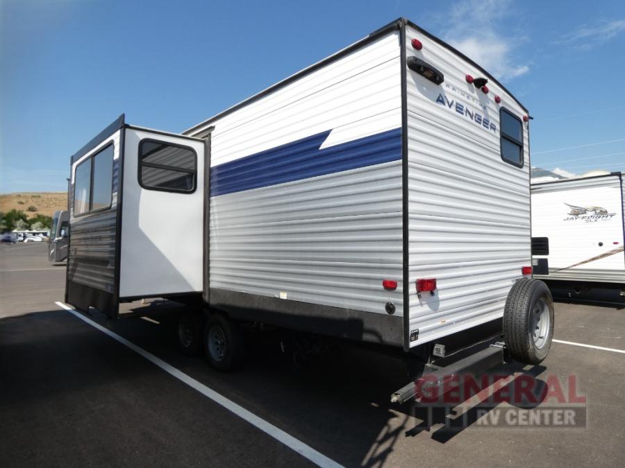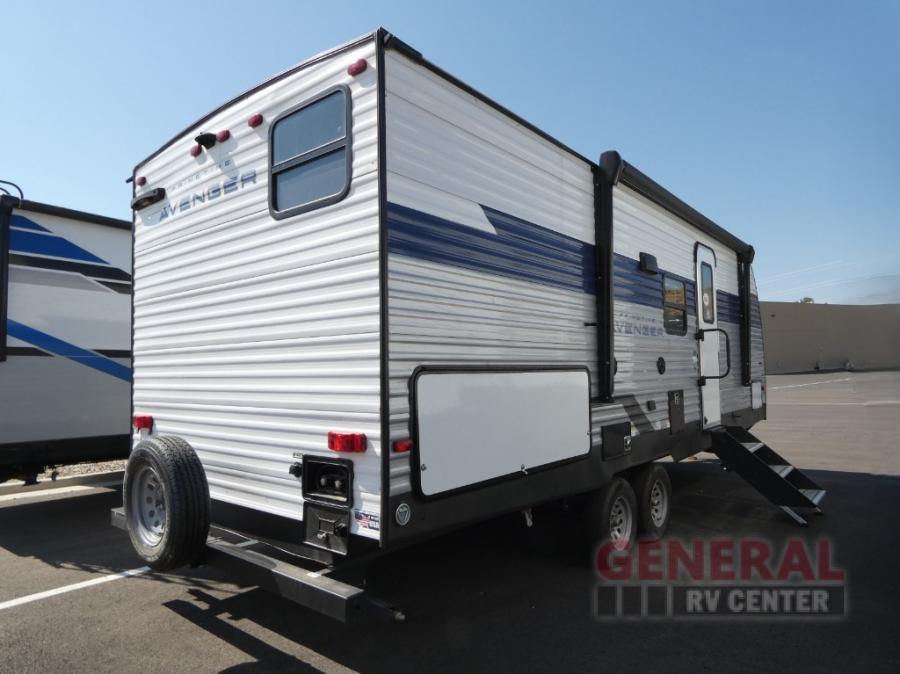 With any Avenger or Avenger LE travel trailer by Prime Time, the exterior includes an aerodynamic radius front profile, a diamond plate front rock guard for protection on the road, a power tongue jack for easy setup, and four stabilizer jacks. There is an aluminum exterior skin, a walk-on roof with decking, and an Extreme Weather package plus enclosed underbelly. The interior offers a 13,500 BTU air conditioner for the perfect climate inside, in-floor ducted heat, a systems monitor panel, and a Bluetooth entertainment system plus more depending on the travel trailer you choose to begin your outdoor adventure with.