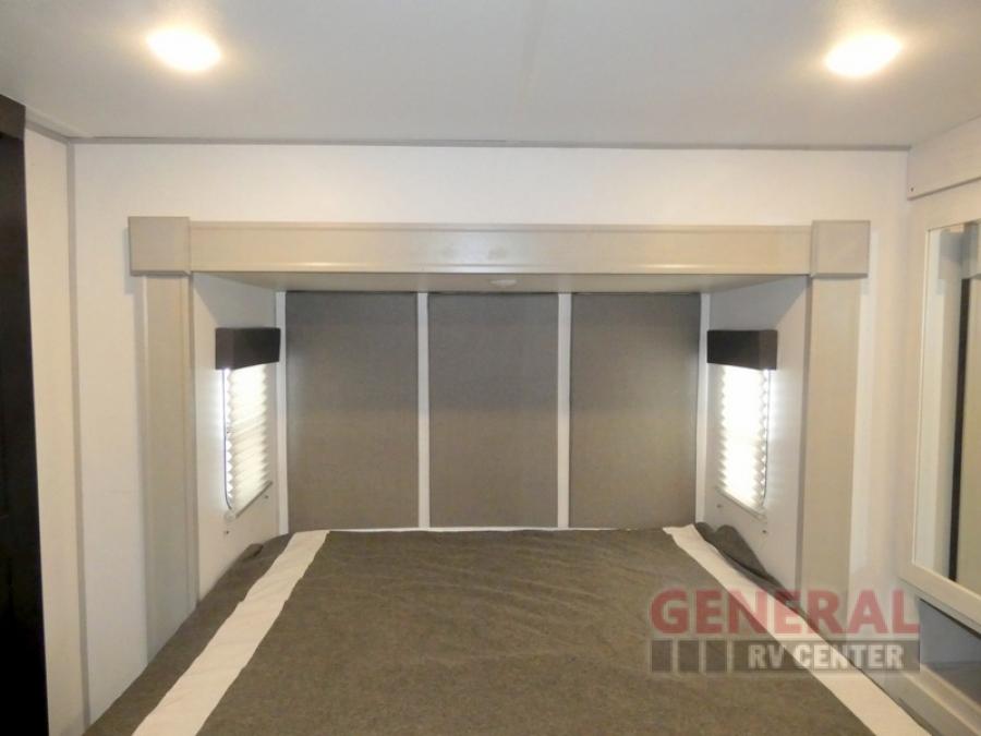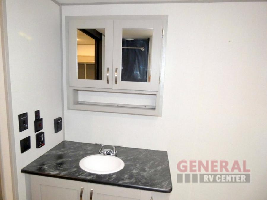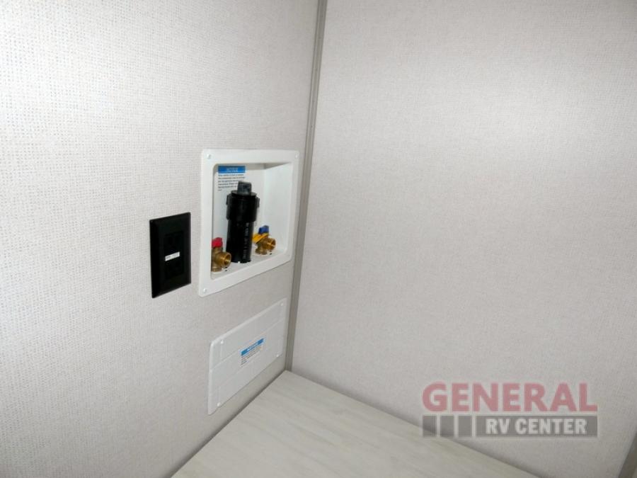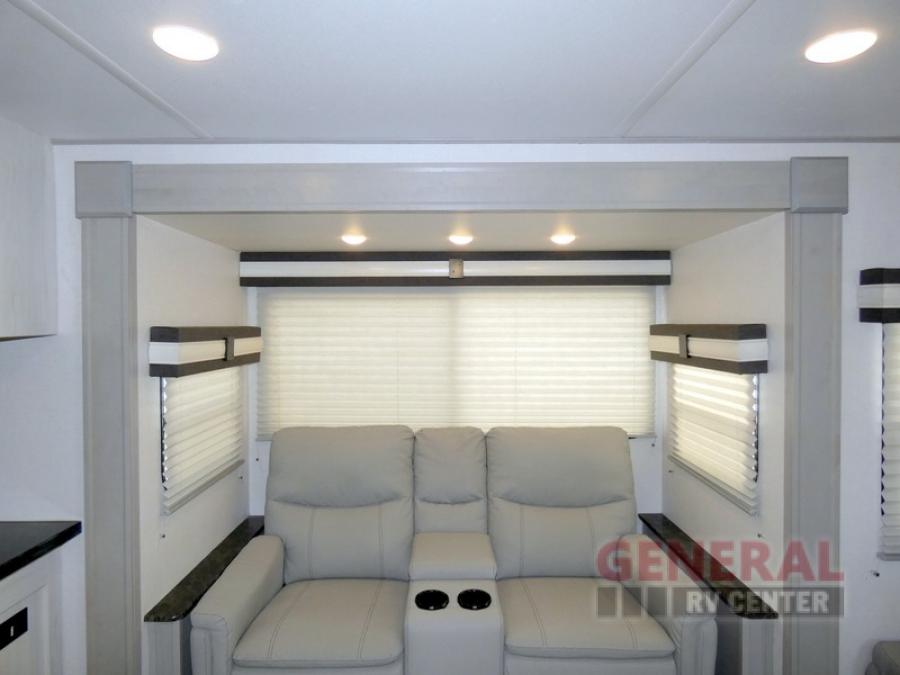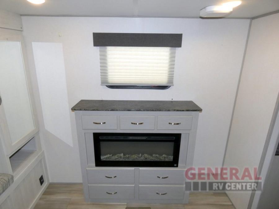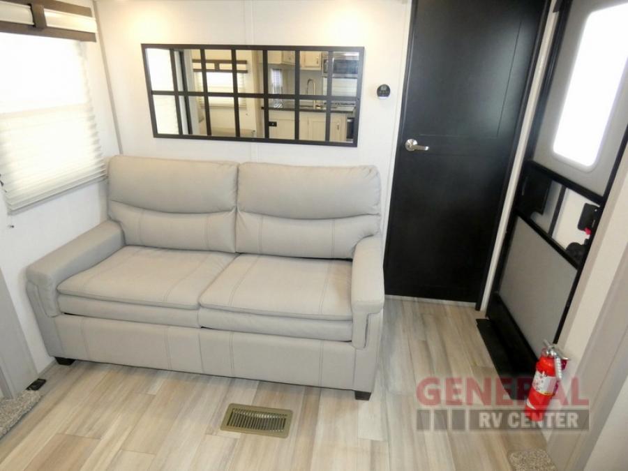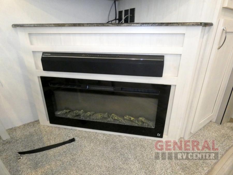 You will be ultra impressed by this LaCrosse travel trailer! First, the interior is made to feel just like your own home with its theater seating, hide-a-bed sofa, free-standing table with chairs, and entertainment center with 50" LED TV and fireplace. Second, you'll find even more residential comfort in the rear kitchen that has a Furrion residential cooktop, a 30" microwave oven, and a 10.7-cubic foot refrigerator. And lastly, the walk-through bathroom has two doors on either side with one of those doors leading directly into the front private bedroom, so you know you'll enjoy great comfort in this space each night. There is also a bedroom bench at the front of this trailer which gives you an enjoyable place to relax as you take in the views from the front windshield.
