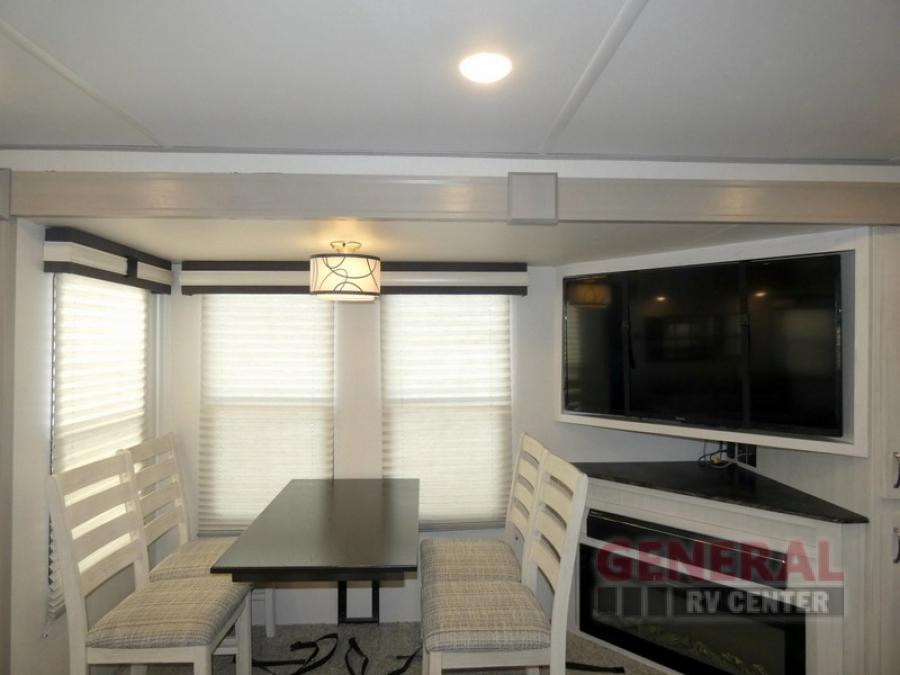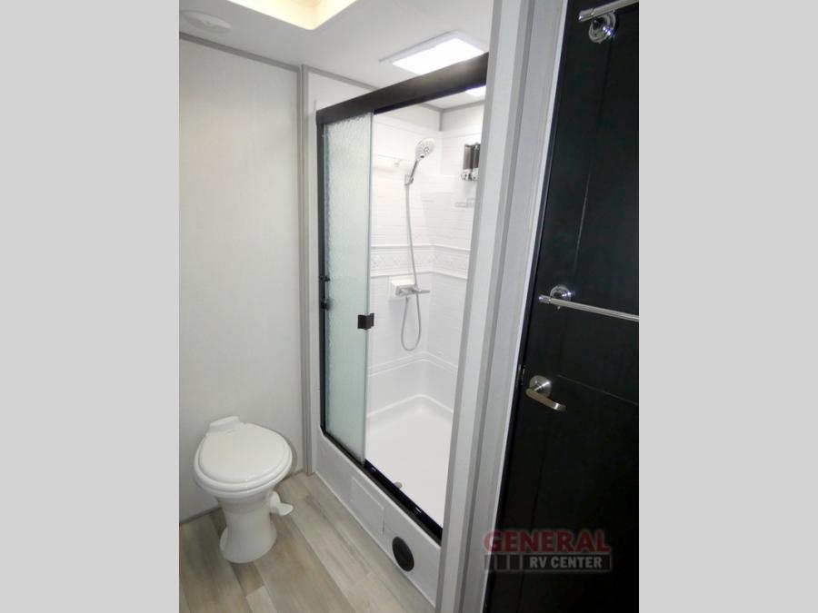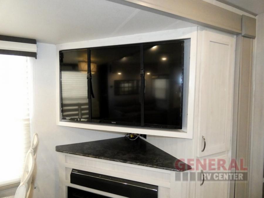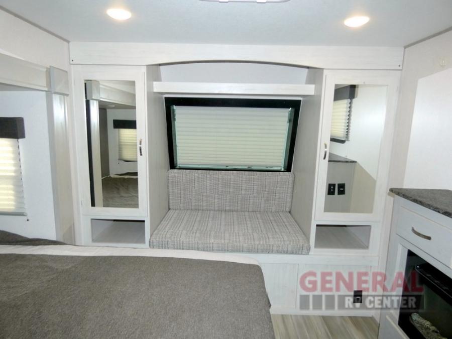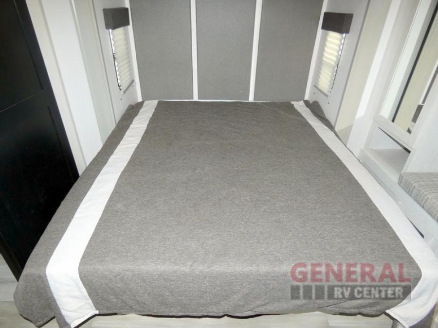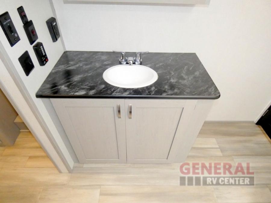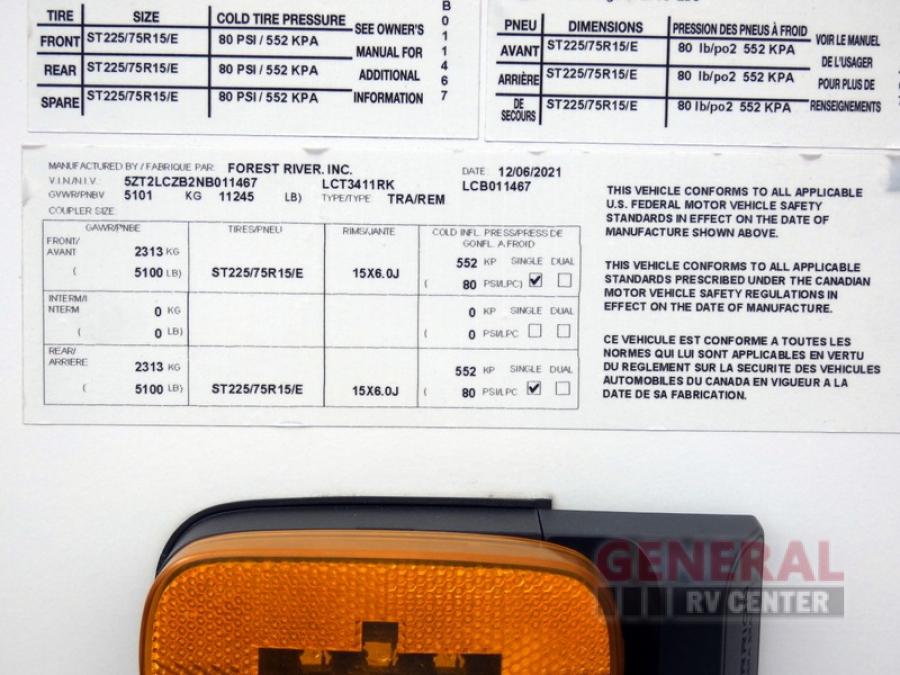 You will be ultra impressed by this LaCrosse travel trailer! First, the interior is made to feel just like your own home with its theater seating, hide-a-bed sofa, free-standing table with chairs, and entertainment center with 50" LED TV and fireplace. Second, you'll find even more residential comfort in the rear kitchen that has a Furrion residential cooktop, a 30" microwave oven, and a 10.7-cubic foot refrigerator. And lastly, the walk-through bathroom has two doors on either side with one of those doors leading directly into the front private bedroom, so you know you'll enjoy great comfort in this space each night. There is also a bedroom bench at the front of this trailer which gives you an enjoyable place to relax as you take in the views from the front windshield.