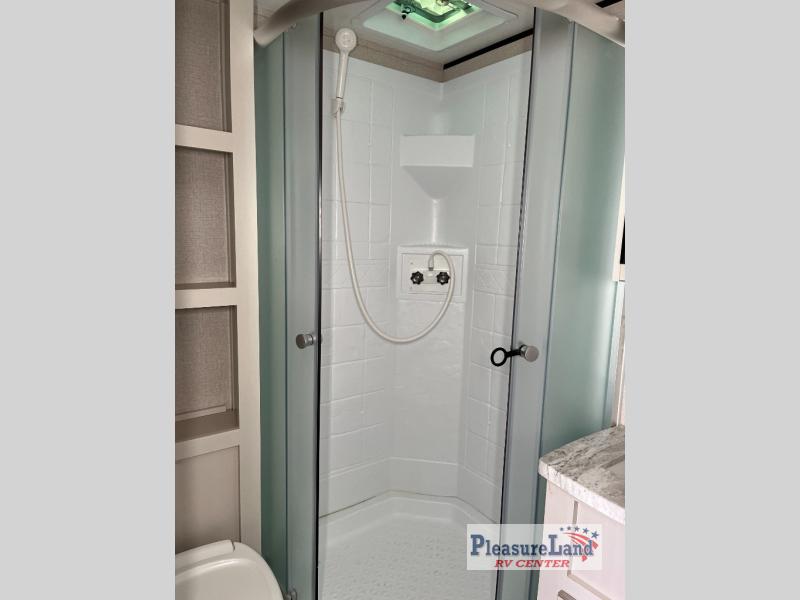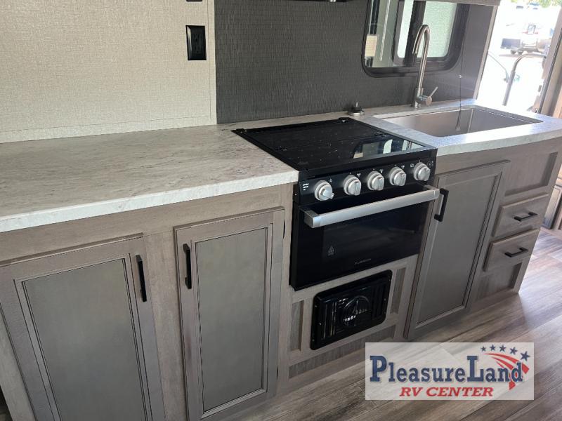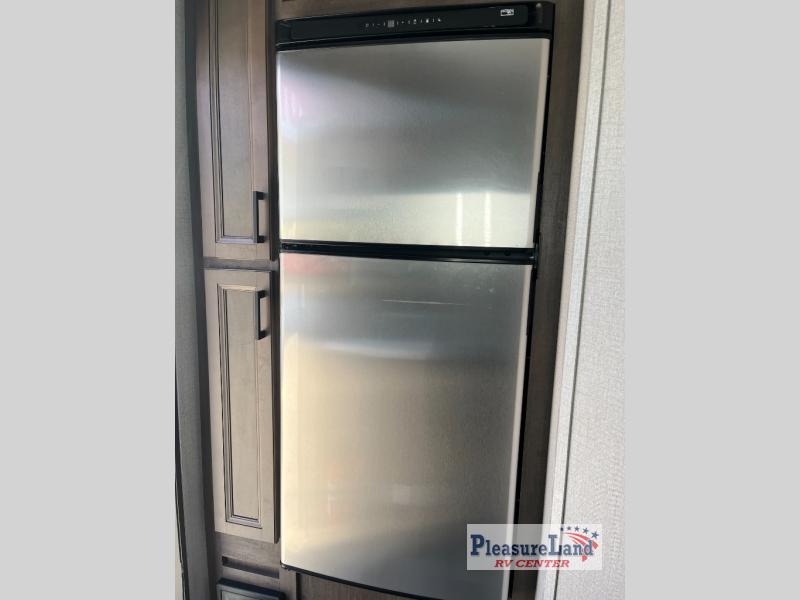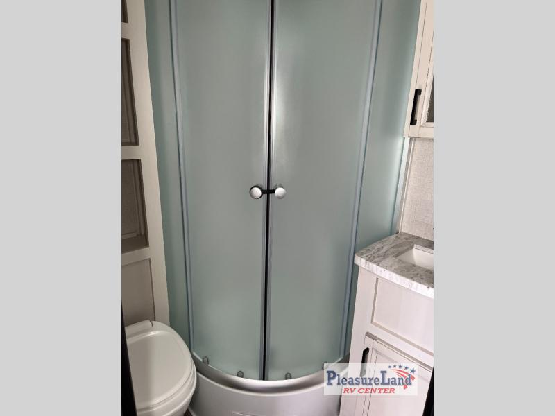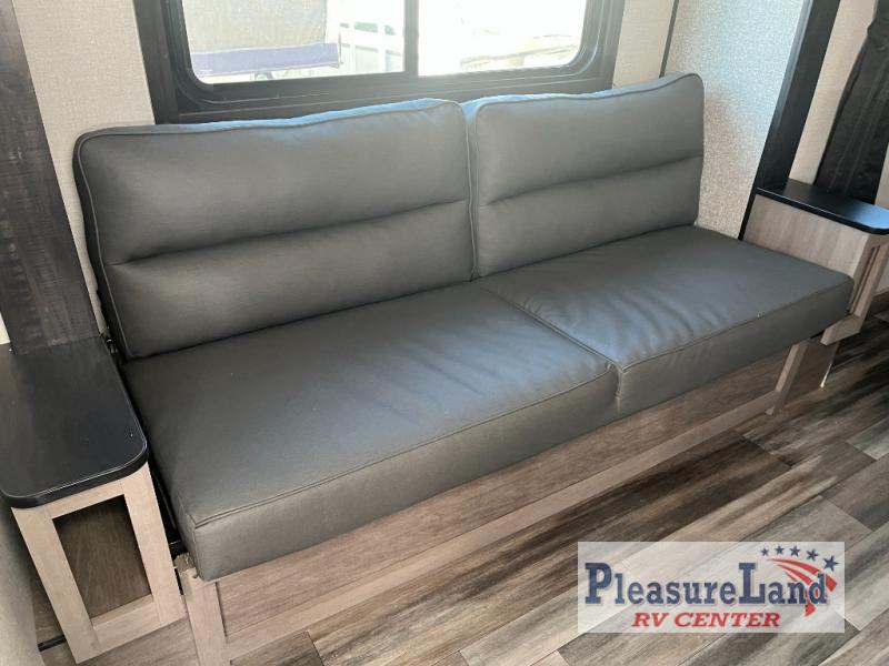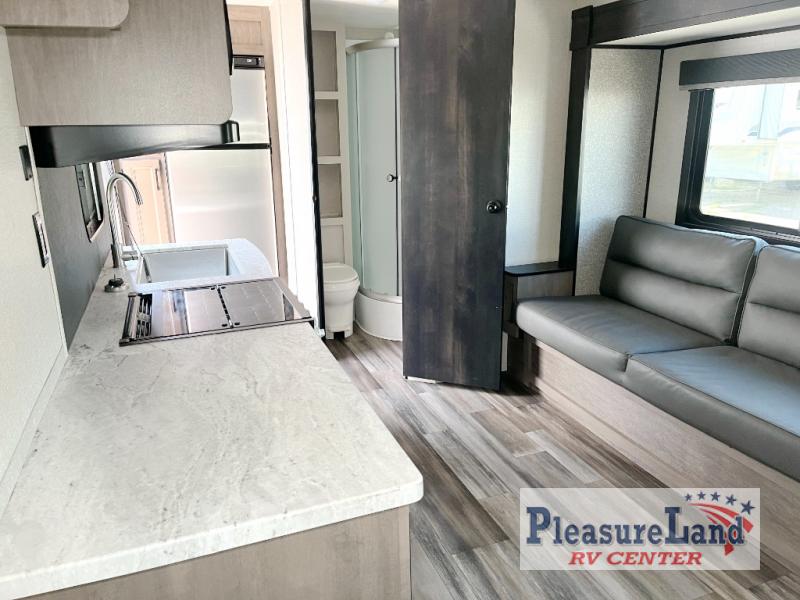 It's time to head out for some camping fun and relaxation in this trailer that easily accommodates a couple or group of three to four! There is a front bedroom with a privacy curtain and a walk-around bed with dual wardrobes and windows for views of your campsite. You can dine at the jackknife sofa slide with table as well as work or play games in this space, then at night the furniture provides extra sleeping space. Everyone can take turns getting cleaned up in the full corner bathroom with a radius shower, and some might like to relax under the 12' power awning before calling it a night. There are options you might like to add such as an 8 cu. ft. refrigerator, a 15,000 BTU A/C, electric stabilizer jacks, and/or an LED TV.