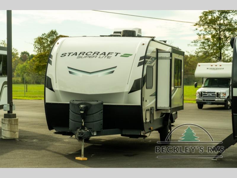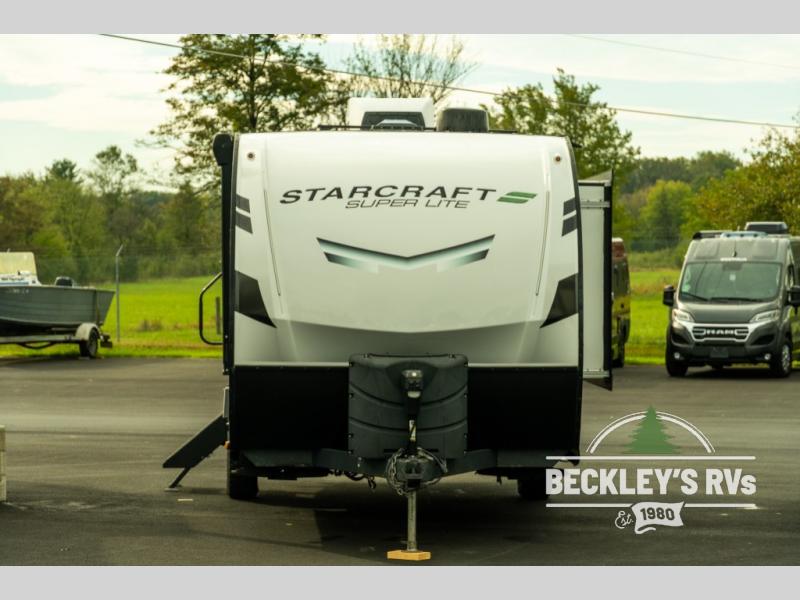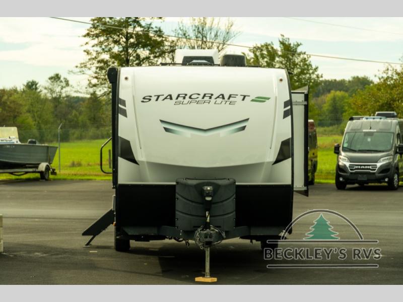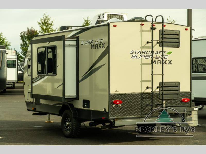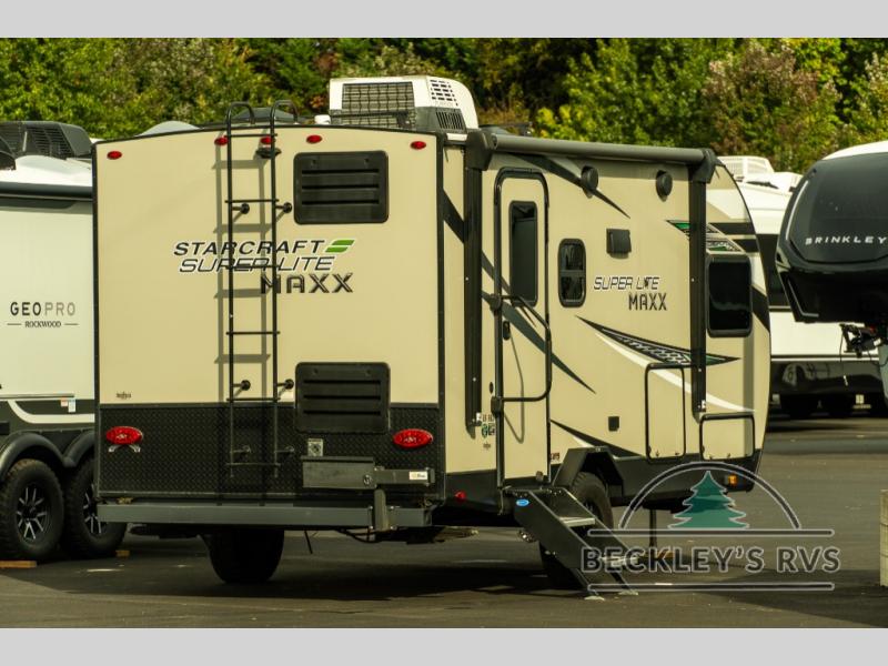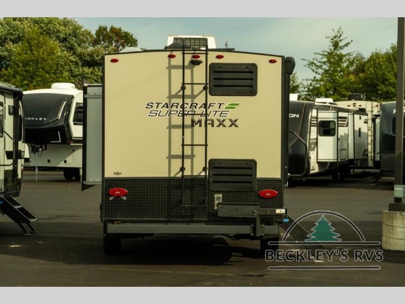 If you want to power up your camping experiences, take it to the max with the Starcraft Super Lite Maxx travel trailer! Each unit is built to last with a Magnum Roof system, PVC roofing membrane, and a TuffShell exterior which is a vacuum-bonded laminated construction, reinforced with heavy-duty fiberglass and welded aluminum frames. The 15" nitrogen-filled off-road radial tires with aluminum rims, impact-resistant galvanized steel wheel wells, and rubber torsion axle with increased ground clearance adjustments are great additions that allow the Super Lite Maxx to take adventures off the beaten path. Transform your campsite into the party space everyone wants to be a part of by using the marine-grade exterior speakers and power awning, and add the optional Off-Grid Solar Package if you want to take advantage of natural energy. You can also add an optional Wi-Fi router too!