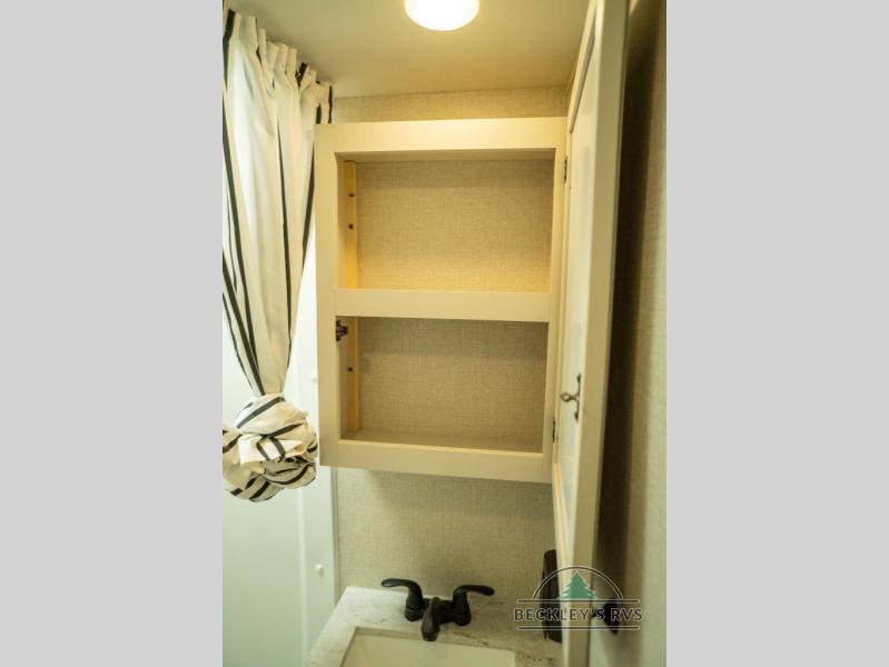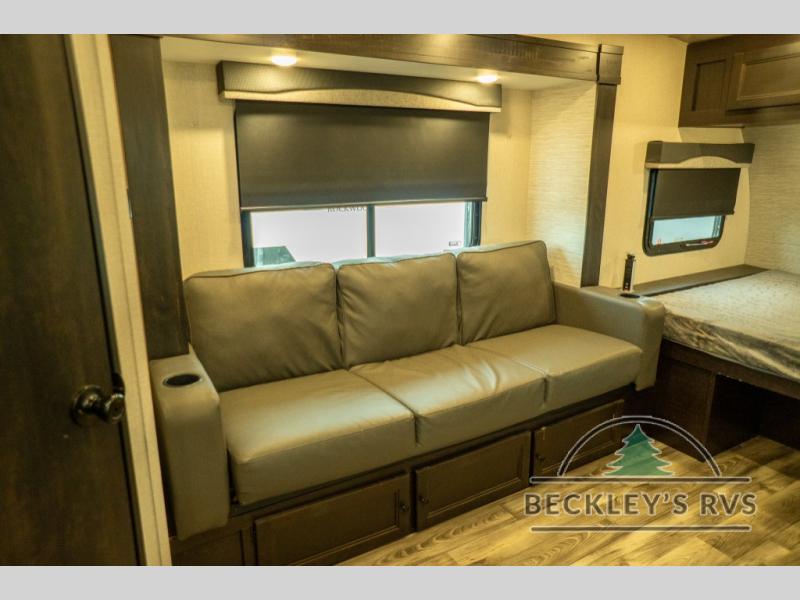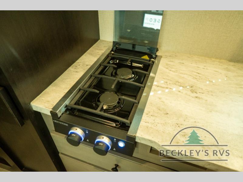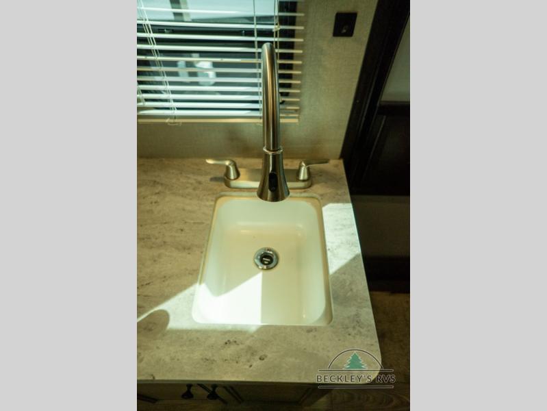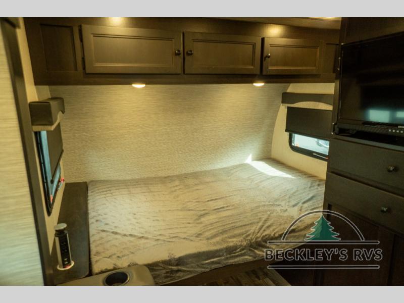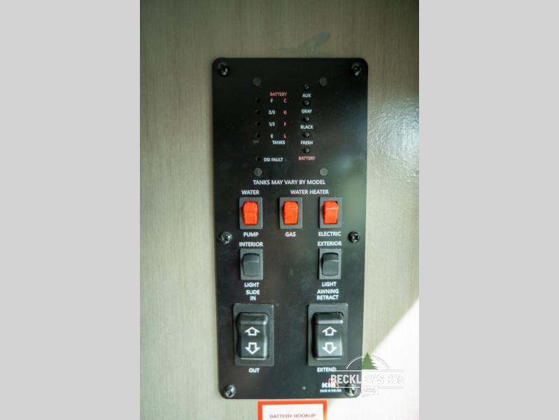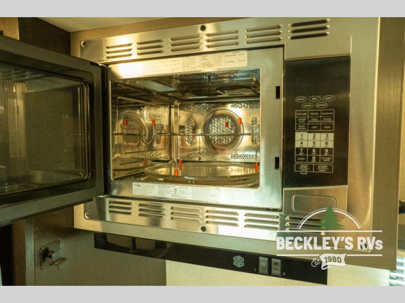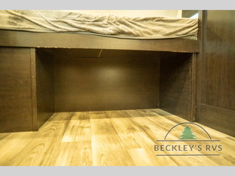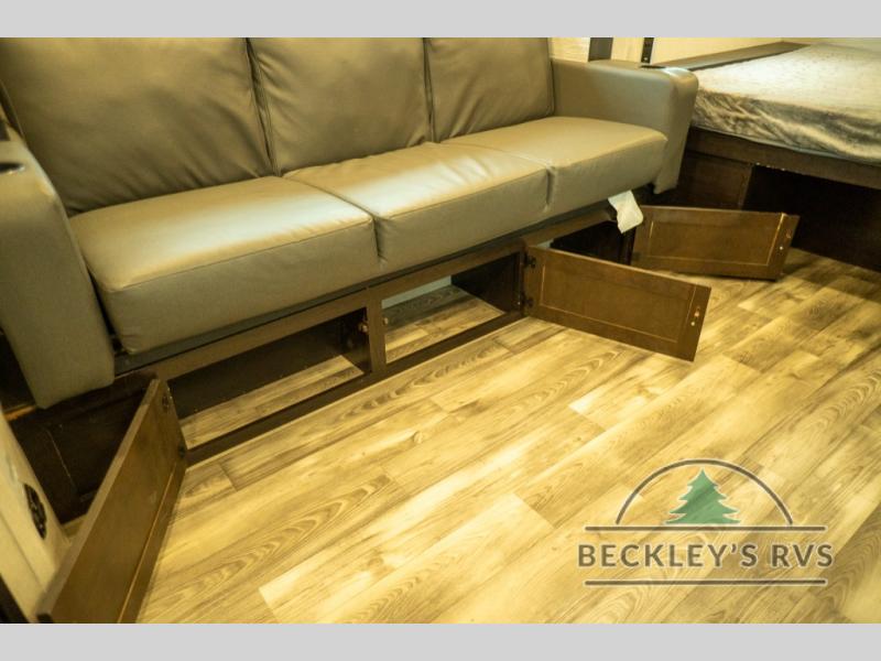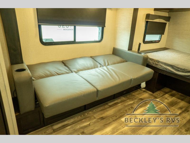 This Super Lite Maxx travel trailer has all of the essentials in an easy-to-tow package! Your interior is outfitted with residential vinyl flooring and hardwood cabinetry, and there are no floor heat registers which makes it very accommodating for kids and pets. The full bathroom has a radius shower which is essential to have if you want to get away in seclusion, and the skylight and roof vent keep the bathroom fresh. The two-burner recessed range and convection microwave will help you keep your belly full, and you can keep the 8-cubic foot refrigerator full of special goodies and healthy foods. You will also find a pantry directly to the left of the entry door.