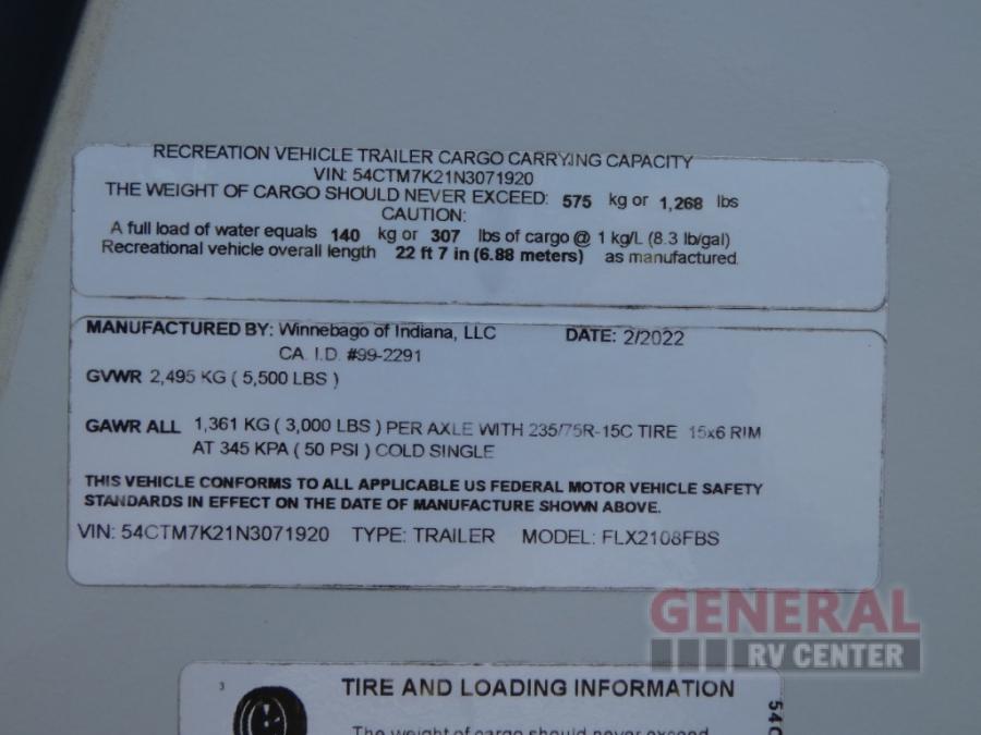 Winnebago Industries Towables Micro Minnie FLX travel trailer 2108FBS highlights: