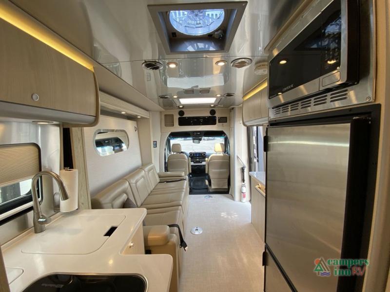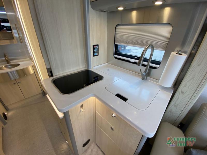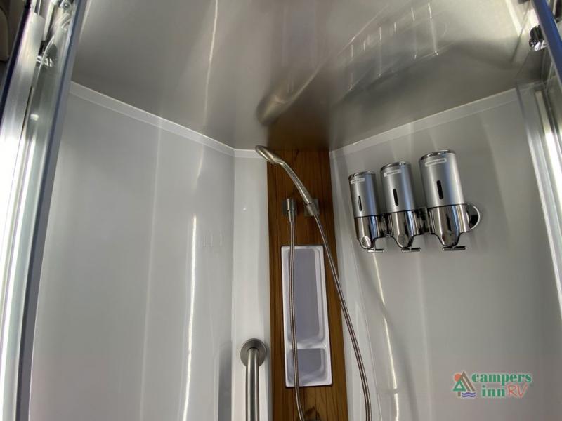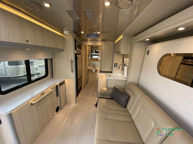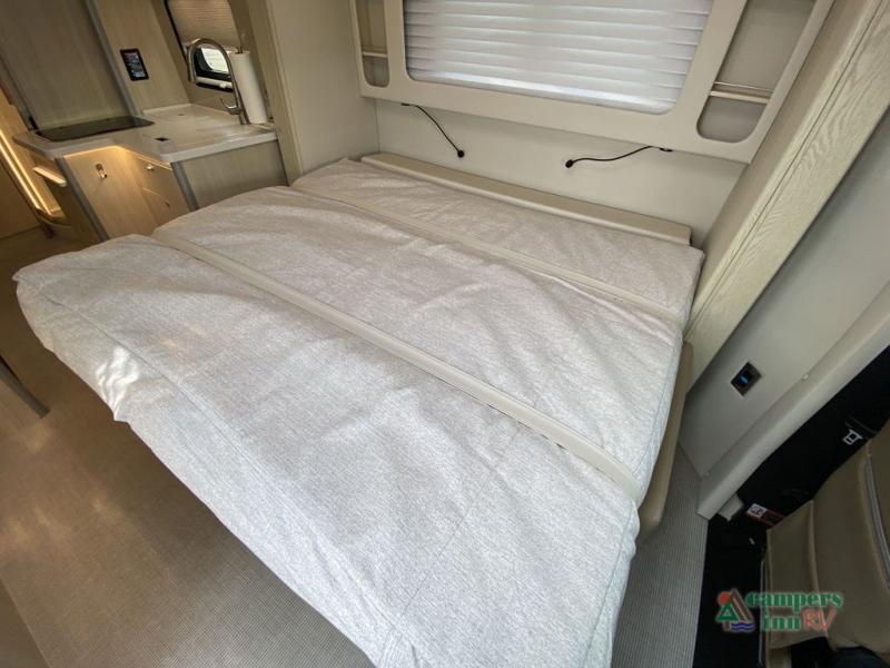 With the Atlas Class B+ diesel motorhome by Airstream, you not only get an enduring Airstream design, conveniences and luxury features, you also get the proven Mercedes-Benz safety systems and performance. The coach is built with Azdel composite roof, floor, and wall material, a vacuum-bonded aluminum framed floor, radius walls, a fiberglass crowned roof for extra headroom, trimless smooth fiberglass body seams, and molded fiberglass front and rear caps. The main cabin offers adjustable LED lighting, flush-mount cabinet hardware and soft close doors, a Froli ergonomic bed support system for a good night's sleep. You will also enjoy Ultraleather seating, USB charging ports for your electronics, marine woven synthetic flooring, and matte finish laminate cabinetry to mention a few highlights. When you are wanting quality and craftmanship, and a well-traveled life, choose the Atlas and never turn back!