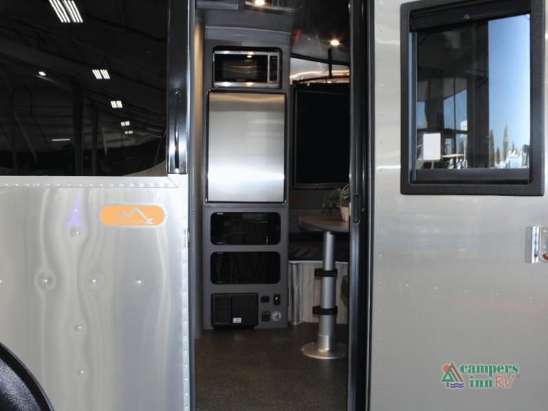 Inside, Airstream’s legendary craftsmanship shines with clever design and high-end materials: