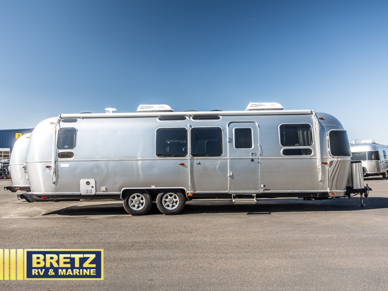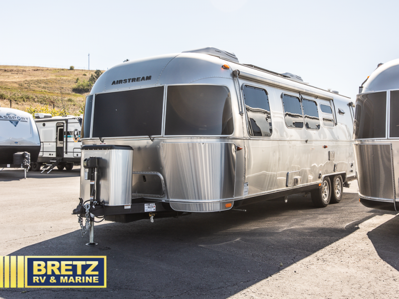 With each Flying Cloud travel trailer by Airstream, there are two axles, and each is built for ease of towing, plus there is a rear-view camera to make reversing and parking easier, and stainless steel front stone guards to protect the lower segments from road debris. The iconic Airstream design is created outside and inside by the semi-monocoque aluminum superstructure, the temperature reducing one-piece white aluminum roof, the panoramic front windows, and the stylish aluminum wheels. The interior will have you feeling right at home with handcrafted cabinetry, plenty of storage and counter space, sleek roller blinds and blackout curtains, plus residential style faucets!