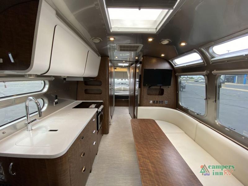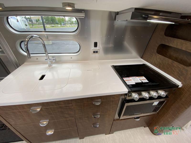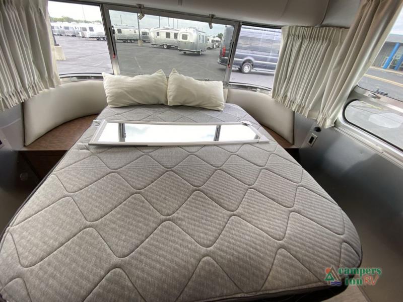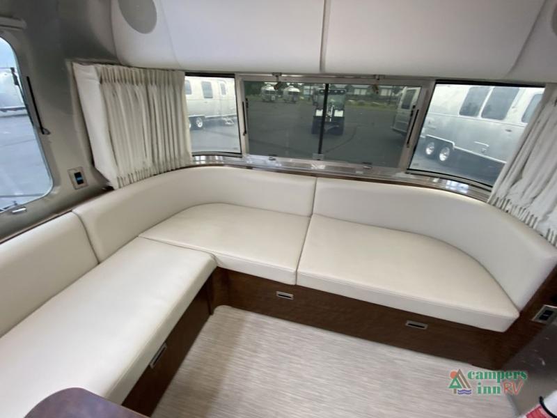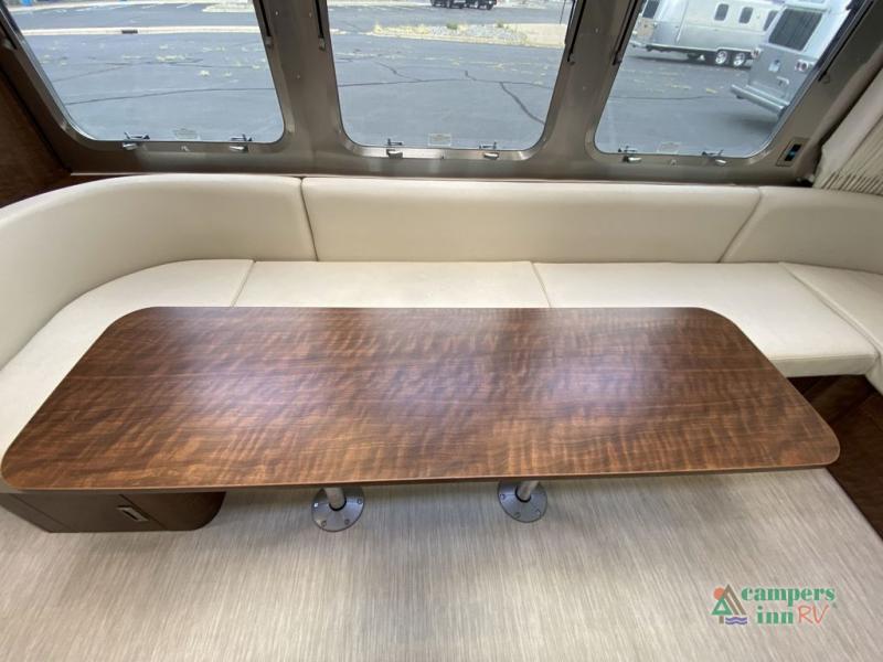 Each one of these Airstream Globetrotter travel trailers are built to last a lifetime with a structural frame and durable fabrics! European inspired and American made with a minimalist design that includes crisp, clean lines and delicate neutral colors for a sophisticated beauty with soft curves, panoramic windows, wrap-around upholstery, and backlighting. The HITCH seating upholstery has a fine woven texture, a subtle metallic tip print, and a distinctive two-tone feel, as well as durable and stain-resistant. You won't have to go far when charging your electronics thanks to the strategically placed USB and 110V outlets throughout. The QuietStream ducted A/C system can quickly cool the inside and also has a heat pump to pull ambient heat from the air. Come choose your favorite model today!