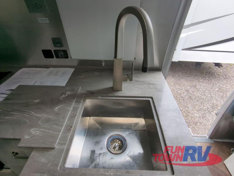 The first thing you will notice about this International travel trailer is the calming atmosphere! Airstream has done a wonderful job of creating a tranquil sanctuary for you to take your vacations in. The kitchen has a three-burner cooktop, stainless steel sink, 8 cu. ft. refrigerator, and microwave so that you can create new and exciting dishes each time you are away. This trailer also has excellent storage space with the overhead storage lockers, the wardrobe with hanging bar, the under-bed storage, and the exterior storage compartment. You can also find great entertainment as you spend your time in this trailer because the two LED HDTVs will allow you to watch a movie on the Blu-Ray DVD player.