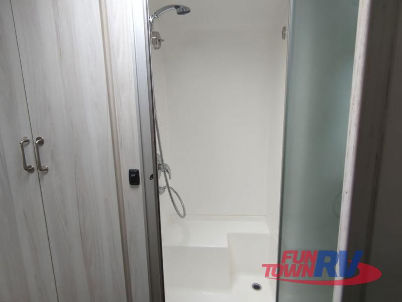 Every time you step foot into the Airstream International travel trailer, you will feel as if you are breathing in a breath of fresh air! The fresh coastal décor was inspired by the waterfront, and the stylish interior delivers a relaxing environment and comfortable luxury. The panoramic windows increase the amount of natural sunlight that streams through to the interior, but they also have blackout shades that you can close whenever you need a darkened room. The beautiful handcrafted Italian Lite-Ply laminated cabinetry is an attractive base for the overhead storage lockers that have sliding doors and LED lighting. The dimmable interior LED lighting will create the perfect amount of illumination for you as you spend time indoors. The exterior has excellent features as well with its enclosed aluminum insulated heated underbelly, unique front door key with heavy-duty deadbolt, optional solar package, solar front window protection, and exterior shower with hot and cold water.