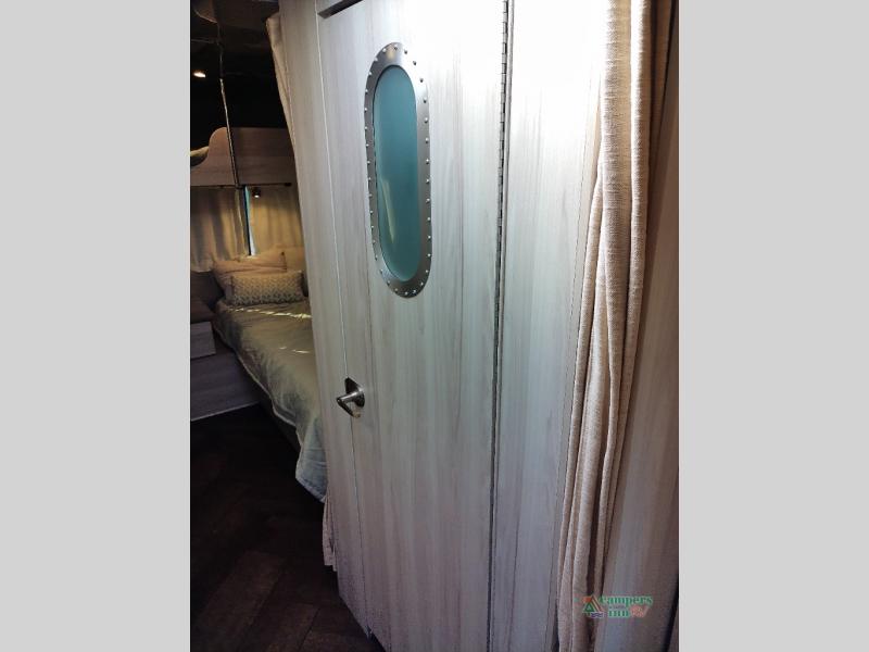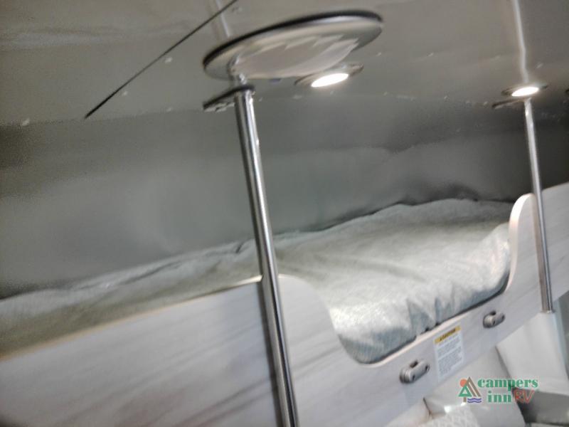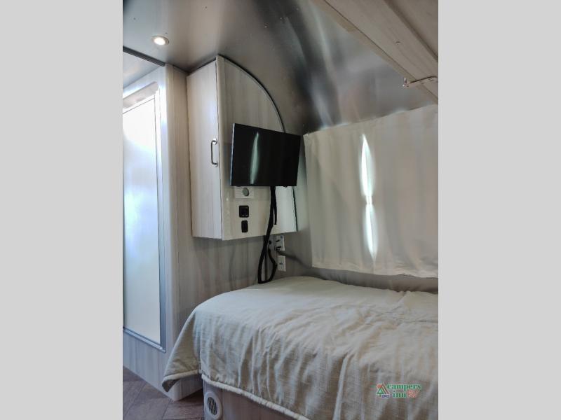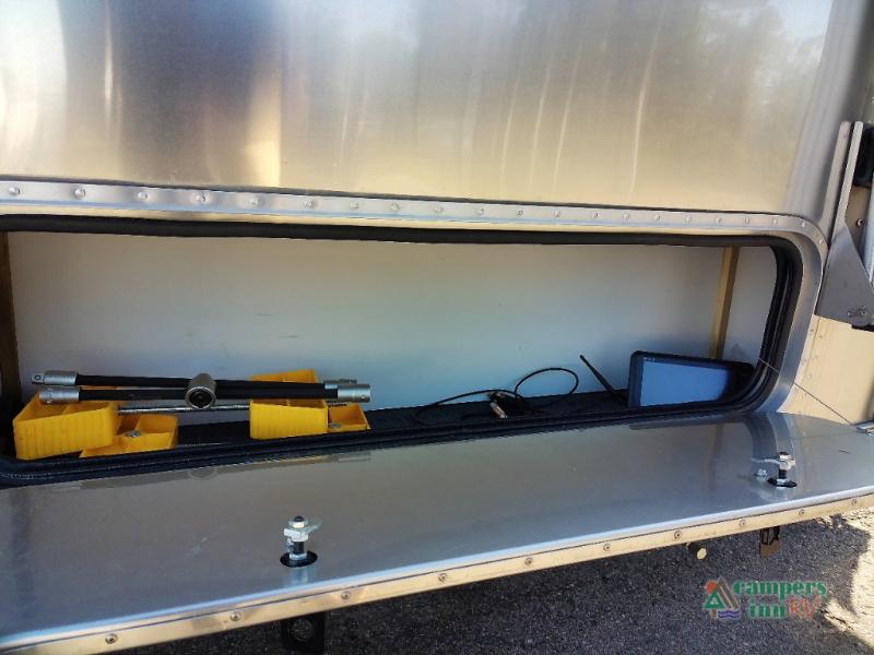 Every time you step foot into the Airstream International travel trailer, you will feel as if you are breathing in a breath of fresh air! The fresh coastal décor was inspired by the waterfront, and the stylish interior delivers a relaxing environment and comfortable luxury. The panoramic windows increase the amount of natural sunlight that streams through to the interior, but they also have blackout shades that you can close whenever you need a darkened room. The beautiful handcrafted Italian Lite-Ply laminated cabinetry is an attractive base for the overhead storage lockers that have sliding doors and LED lighting. The dimmable interior LED lighting will create the perfect amount of illumination for you as you spend time indoors. The exterior has excellent features as well with its enclosed aluminum insulated heated underbelly, unique front door key with heavy-duty deadbolt, optional solar package, solar front window protection, and exterior shower with hot and cold water.