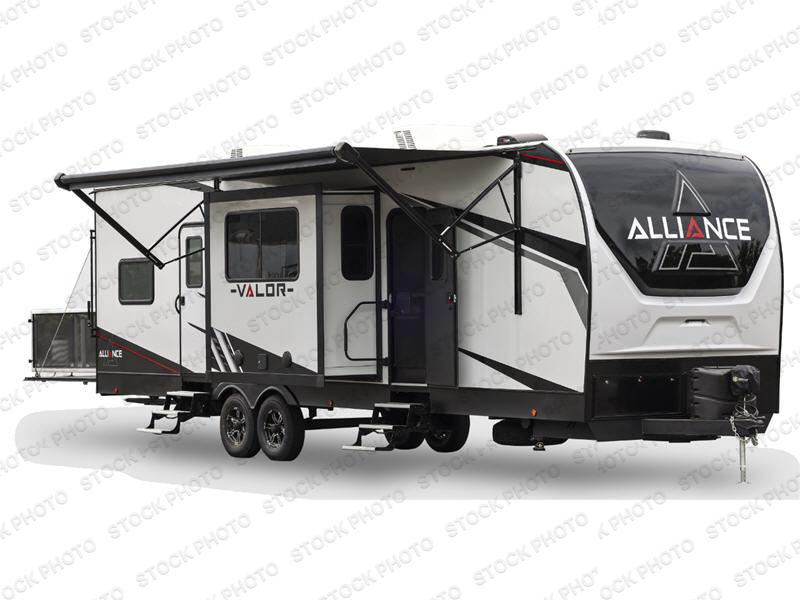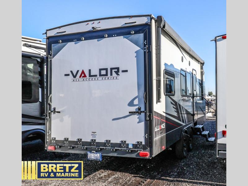 You can bring your toys with you wherever you go with any one of these Alliance RV Valor toy haulers! They are adventure-ready with a quality build from the walk on roof with seamless PVC roof covering to the commercial grade vinyl flooring and painted fiberglass front cap. The Performance Running Gear package comes with a 101" wide-body benchmark chassis platform, 6,000 lb. Dexter axles, and triple aluminum entry steps on all entry doors. You can even go off-gridding thanks to the Off the Grid Pack that has two 320 watt solar panels, generator prep, a 20 amp charge controller, and energy management to utilize your power without much effort. Come find the right one for you today!