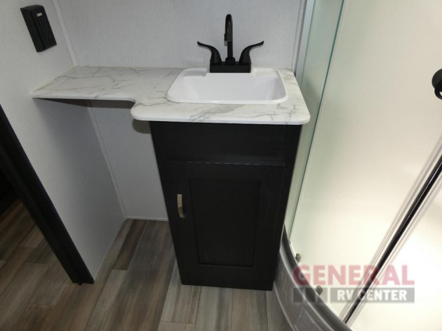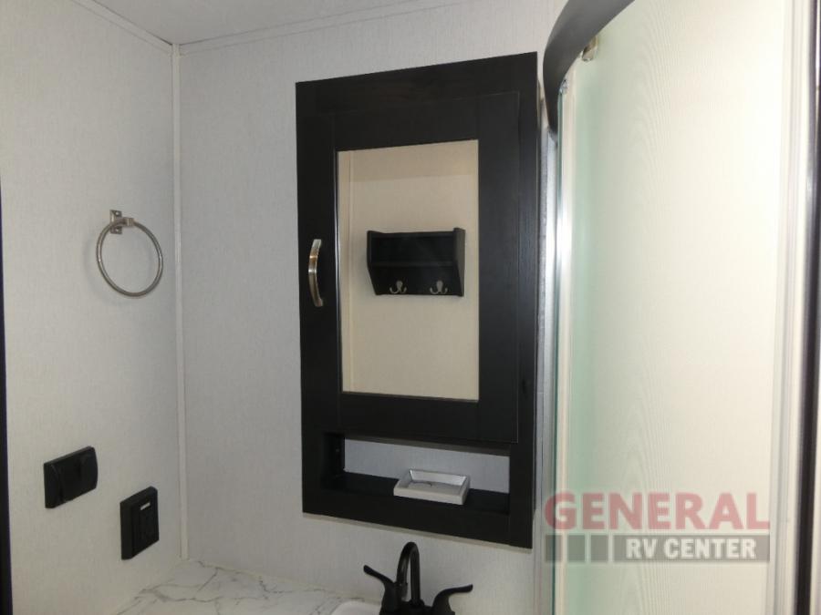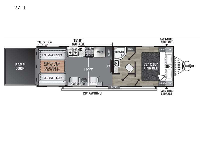 Whether you hit the trails or relax indoors, you will love having this travel trailer at the campsite! After you've unloaded your dirt bikes from the 15' 9" garage, enjoy lunch on the roll-over sofas with a dinette. You may even decide to check the weather on the 39" LED HDTV before heading out to find a trail. This trailer includes a dual entry bath with a shower skylight for extra standing space and the front master bedroom will provide complete comfort with its king bed.