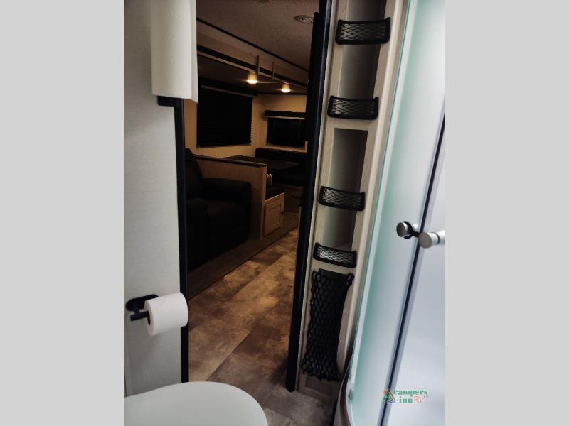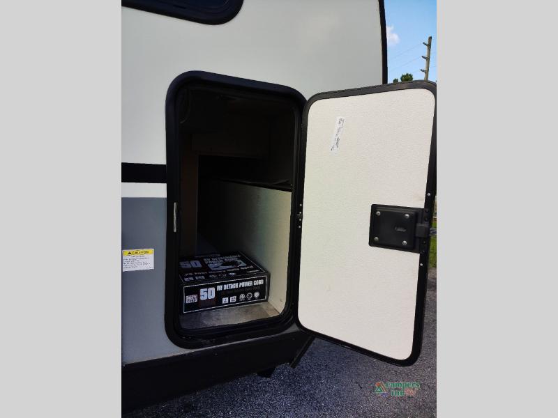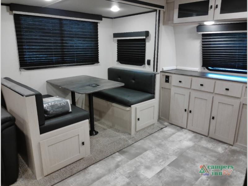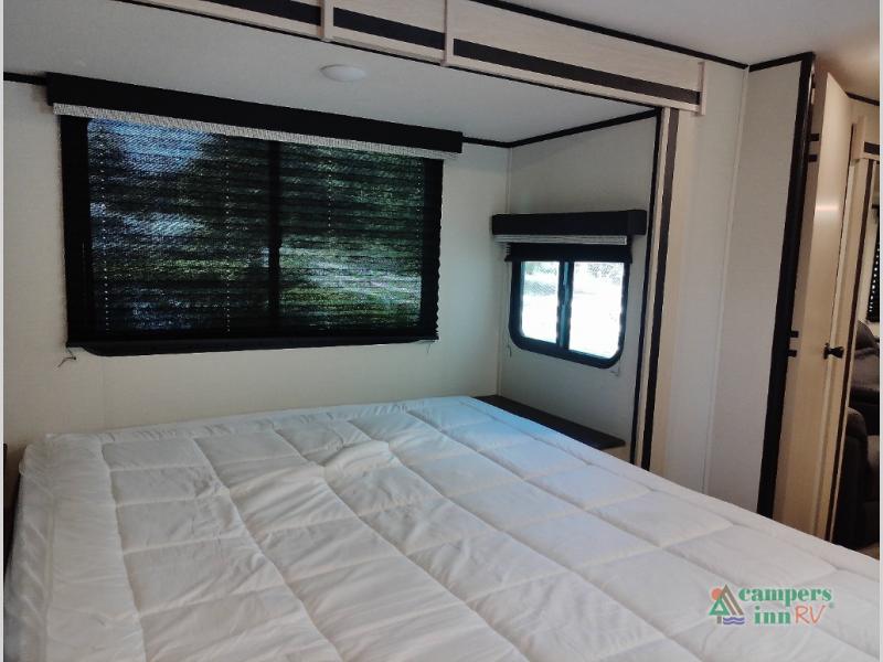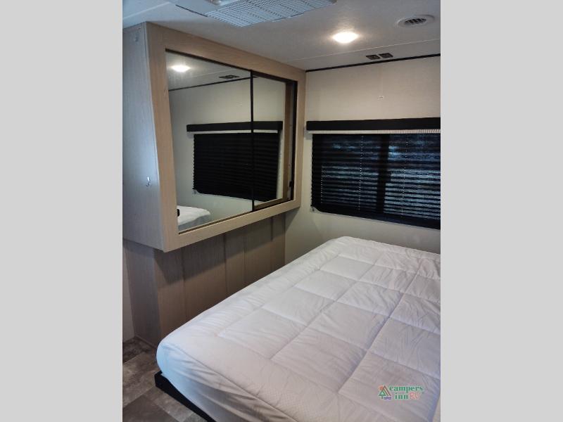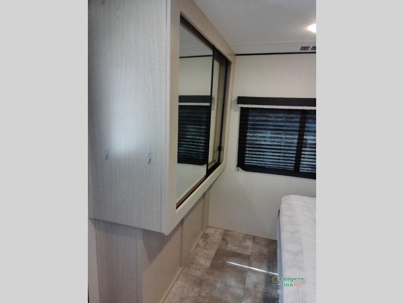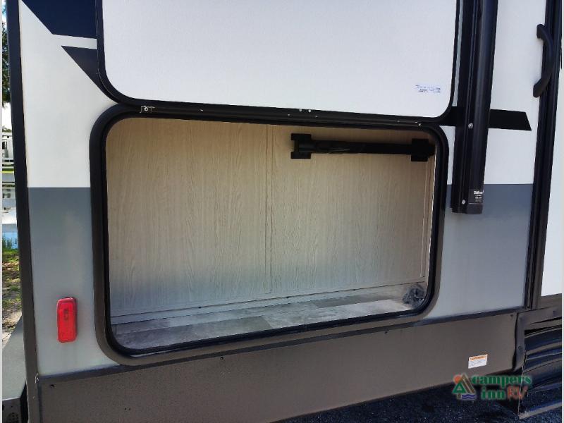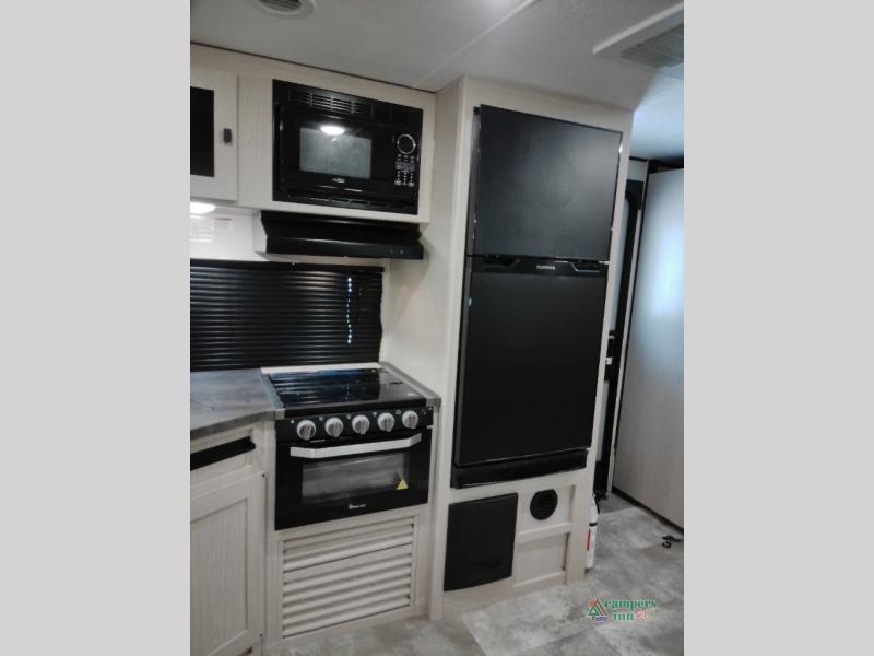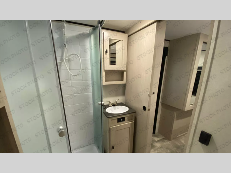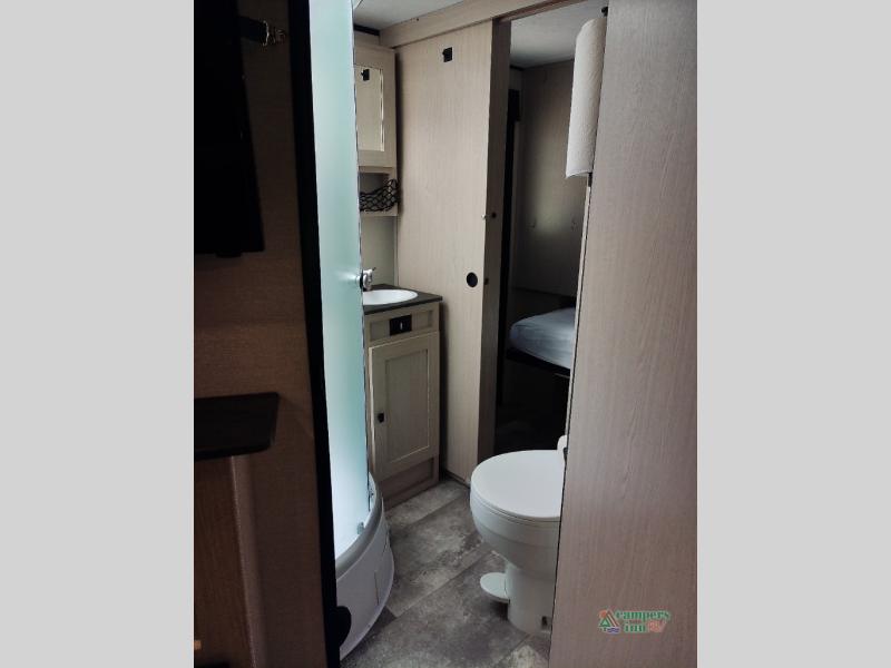 Enjoy each adventure camping in this Apex Ultra-Lite unit featuring dual entry doors. There is sleeping for up to six with the convertible dinette and sofa, plus a queen bed slide in the rear private bedroom that includes super storage beneath. This bedroom also features a large wardrobe near the private bedroom entry door. The front kitchen has everything you need to prepare hearty camp meals easily thanks to the large counter space for prepping. A booth dinette and sofa slide offer seating for everyone and all will easily be able to view the entertainment center with TV and cozy fireplace from either one. A large pantry is conveniently located just inside the main front most entry door where you can quickly grab a snack for outside, or load up groceries once you shop for your trip.