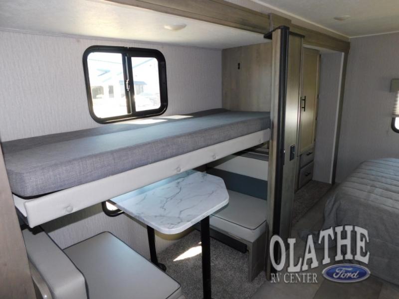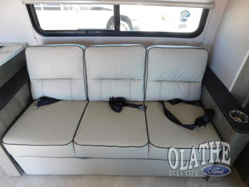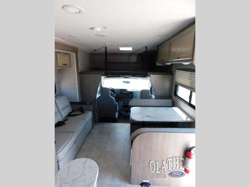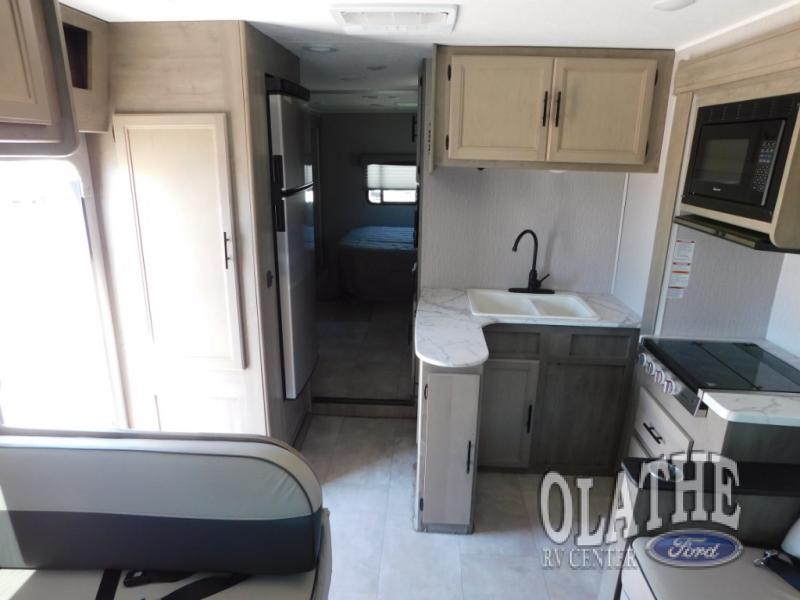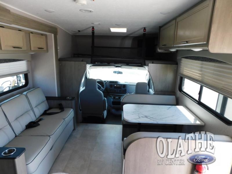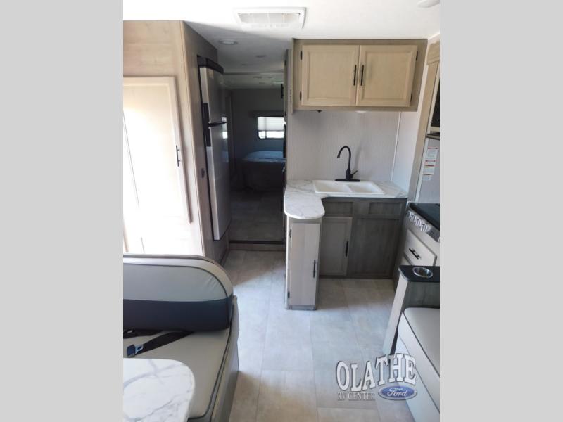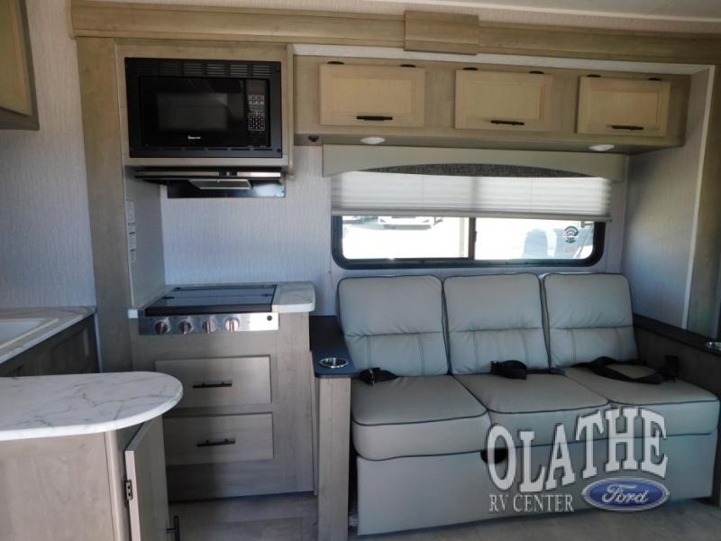 What sights will you see with this Freelander Class C gas motorhome? This model includes the CRV Comfort Ride which features heavy duty front and rear stabilizer bars, electronic stability control, Firestone Ride-Rite adjustable rear air bags, and more for an enjoyable journey each time. Will you set out to the beautiful Grand Canyon or trek through the Rocky Mountains? Whatever you choose to do, the accommodating features found in this coach will make every experience comfortable, like the queen-size bed in the rear private bedroom, the 72" sofa in the main living area, and the full bathroom with its standard shower and skylight. You will also find a full kitchen with a three-burner range, a residential microwave, and a double-bowl sink, so you will certainly eat well throughout every adventure. The kids are sure to love sleeping on the 30" x 68" booth dinette with a flip-up bunk above, plus there is more sleeping space on the cab over bunk and the furniture in the main living area!