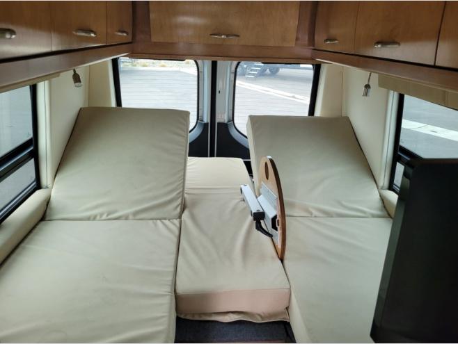 Travel living is easy in this motorhome! If you need to get some work done while you're away then you will appreciate the desk with overhead cabinets but you can switch it out for an optional mid chair or an optional jump seat/pull-out sofa to convert into a junior sleeping area. After a long day of traveling, you can freshen up in the wet bath with the sink and shower that has an Oxygenics Fury handheld shower head with on/off, plus the shower miser water saver prevents unnecessary water waste. The rear fixed bed has power incline and 26 cu. ft. of heated storage underneath it to secure your gear. Keep your bellies full with the single burner cooktop, the Nova Kool 7300 refrigerator with pull-out freezer drawer, and a closet/pantry for snacks. You will also appreciate the reading lights with individual switches and USB ports to charge your electronics as you read at night! Available with optional 4x4 chassis. See dealer for details.