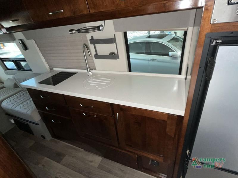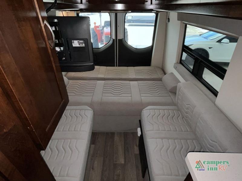 Jump into fun with this motorhome! The two jump seats offer a comfortable place to sit and when they are combined with the motorized rear sofa they create a comfortable sleeping space. Above one of the jump seats is an overhead cabinet wardrobe and a 24" LED Smart TV for watching your favorite movies. After a long day of traveling, freshen up in the wet bath with sink and shower that has an Oxygenics Fury handheld shower head with on/off switch. Now that you are squeaky clean, you can prepare a delicious home cooked meal with the single burner cooktop and comfortably enjoy it sitting in one of the three captain's chairs with a removable table in between them all! Available with optional 4x4 chassis. See dealer for details.
