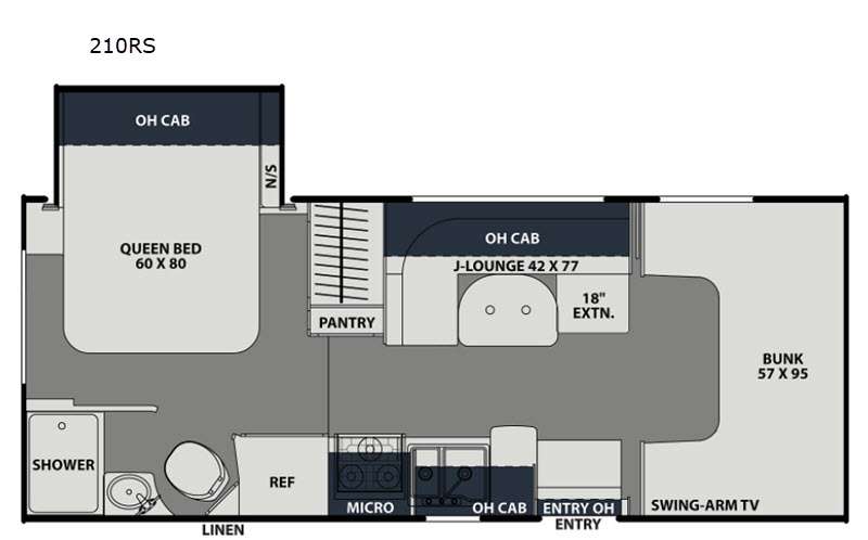 Head to the lake or woods in this comfortable motorhome that can sleep five to six people each night. Once you arrive at your destination, prepare lunch on the three burner cooktop or use the residential-size microwave. When you are ready for bedtime, you will find a queen bed slide for yourself, a bunk above the cab that the kids will surely love, and the J-lounge that can double as sleeping space if needed. There is even an 18" extension on the J-lounge for more dining space. The full bath will allow you to freshen up each day just like you do at home, and the shower skylight will let natural light stream in!