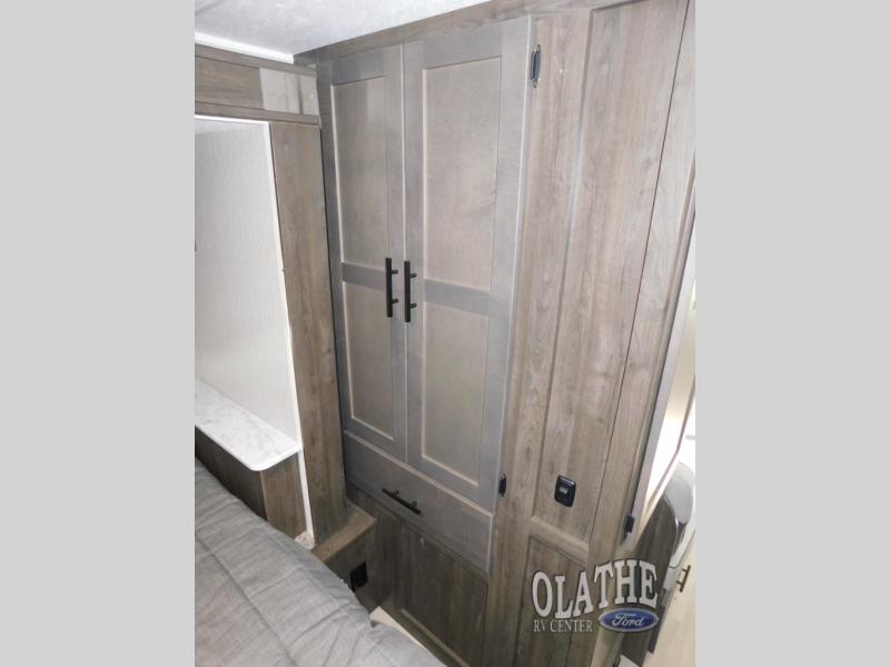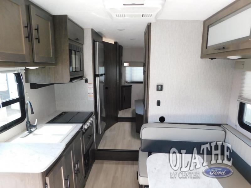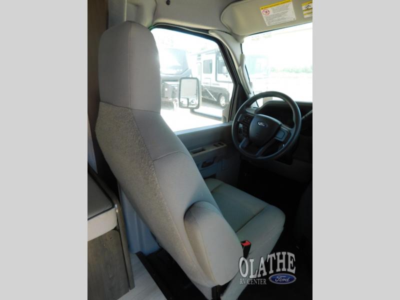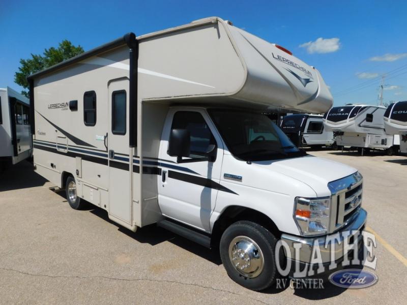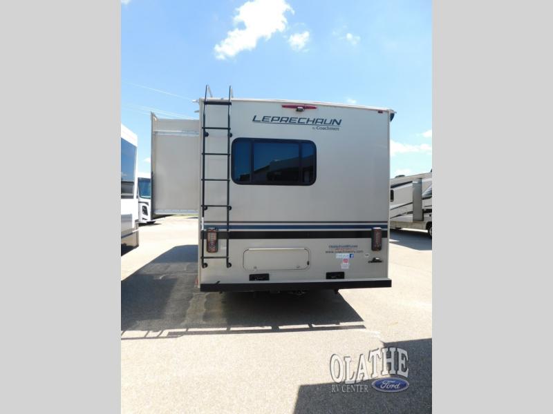 With each Leprechaun Class C gas motorhome by Coachmen you will enjoy "better" interior appointments, like the premium hardwood cabinet doors and drawer fronts, the one-piece thermofoil countertops, and the premium vinyl flooring. You will sleep soundly each night on the upgraded mattress, and staying clean will be easy with the premium showerhead and faucet in the bath. These models include reclining captain's seats, cruise control, and a rear backup camera so you can easily get in and out of the campground. The Leprechaun is constructed with Azdel composite sidewalls, CrossFlex PVC, polyester reinforced roof material, and vacu-bond laminated walls, roof, and floor for a durable motorhome made to last.