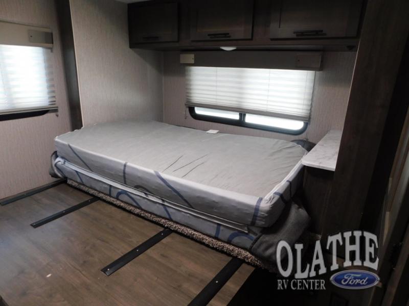 Head to the lake or woods in this comfortable motorhome that can sleep five to six people each night. Once you arrive at your destination, prepare lunch on the three burner cooktop or use the residential-size microwave. When you are ready for bedtime, you will find a queen bed slide for yourself, a bunk above the cab that the kids will surely love, and the J-lounge that can double as sleeping space if needed. There is even an 18" extension on the J-lounge for more dining space. The full bath will allow you to freshen up each day just like you do at home, and the shower skylight will let natural light stream in!