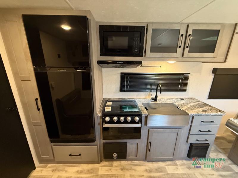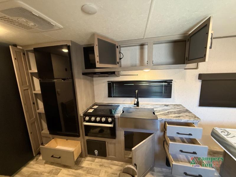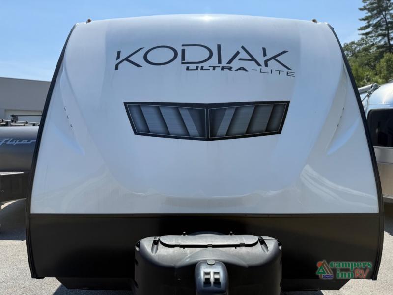 Each Kodiak Ultra-Lite travel trailer by Dutchmen includes an enclosed underbelly, aluminum framing, and bear cage construction for a lightweight, yet durable RV. The HyperDeck flooring features fiberglass reinforced polypropylene, a higher density foam core, and a steel powder coated main frame. Head indoors to find seamless countertops, roller shades throughout, and USB ports for your electronics. These travel trailers come with a power tongue jack and power stabilizer jacks for easy set-up, and easy lube axles to ensure smooth towing. The Solo OneControl Operating System, rearview monitor camera, and slide out toppers are just a few features you'll enjoy from the 35th Anniversary Package, and each model is prepped for WiFi 4G LTE to stay connected to the outside world as you explore nature!