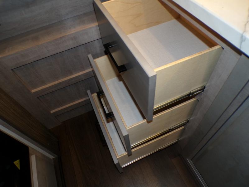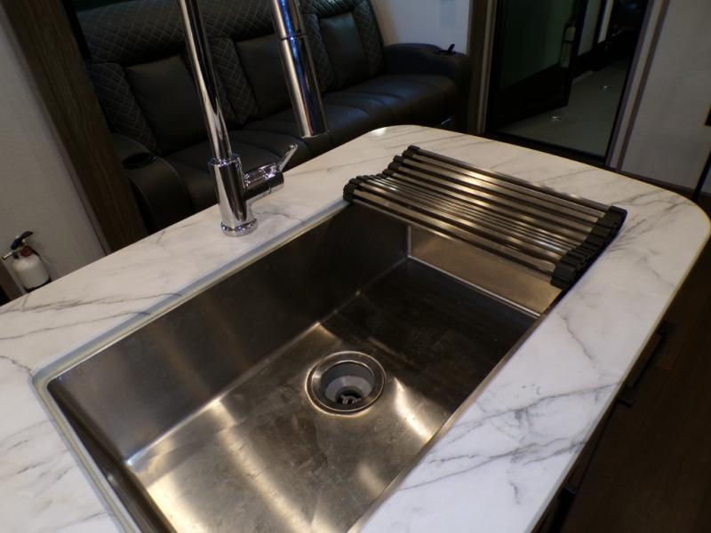With any Voltage Triton toy hauler fifth wheel by Dutchmen you will appreciate the economical price point while still including many luxury features. The 7' slide boxes provide you with space to stretch out, plus there are oversized windows to let the sun through each morning. Some of the other interior comforts you are sure to love are the pleated night shades throughout the entire coach, the stainless steel kitchen sink, the upgraded heat and massage sofas, and more. Each model includes a 30" residential microwave, a 12 gallon water heater, plus two upgraded A/C's to keep you cool all summer long. The Triton garage is ready to house your favorite toys with 2,500 lb. tie-downs and a Tuff Ply floor, and you can add the optional ramp door patio system for more fun. You will also enjoy the two indoor/outdoor speakers, plus a pull down screen to keep the bugs out when you want to dine at the table.