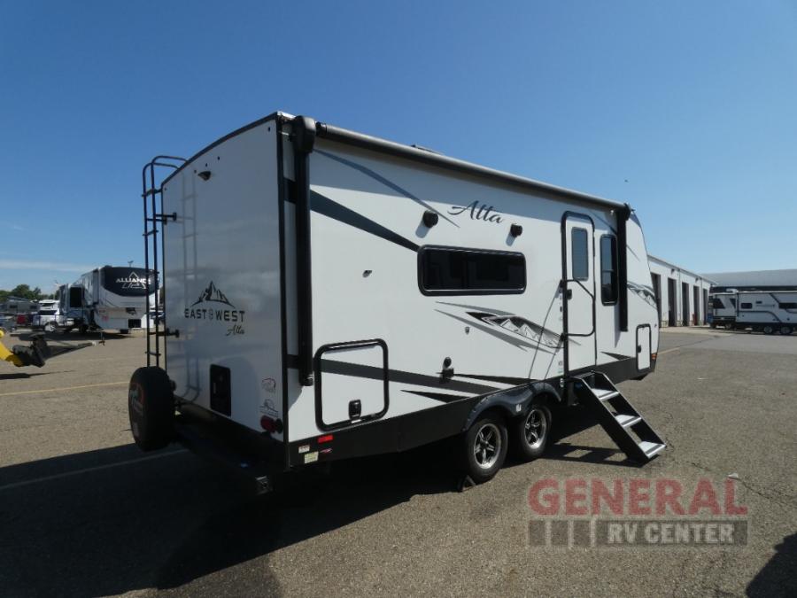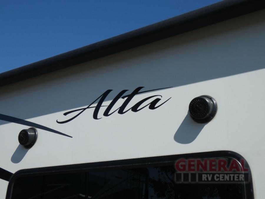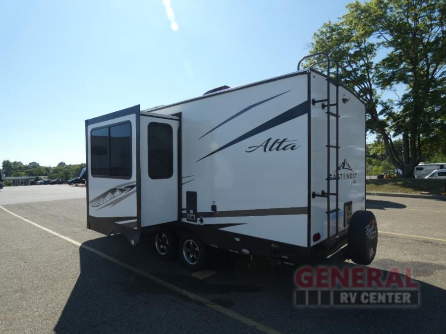 Each Alta travel trailer by EAST TO WEST is constructed with a 5" vacuum bonded roof, flush floor slide outs (where applicable), and diamond plate front rock guard for added protection. Outside, you'll find marine-grade exterior speakers, a universal docking station, and back-up camera prep that can be added to make maneuvering in and out of campgrounds easier than ever. There are USB charging stations for your tablet or phone and designer solid surface countertops you are sure to love. The furnace and 15,000 BTU ducted A/C with quick cool will keep you comfortable in any season, and the 81" interior ceiling height will provide ample space to move about without feeling confined. Start a new adventure in an Alta travel trailer today!
