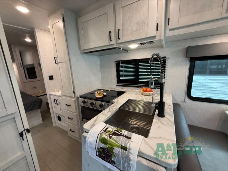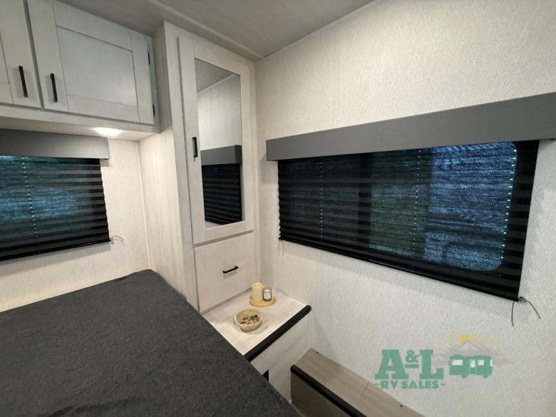 With any Entrada Class C gas motorhome from EAST TO WEST, the construction consists of a completely laminated coach, a one-piece molded fiberglass front cap, 2-inch sidewall and walls with Azdel composite backing, a Dicor Diflex ll TPO roof, and aluminum running boards. Some of the luxury package features include 12V tank heaters to camp during the cooler months, the Winegard Air 360+, plus backup and side view cameras with monitor for safety on and off the road. The interior offers Cold Crack resistant flooring for durability, a 7-foot living height for a spacious interior, and hardwood shaker style cabinets. Choose an Entrada for its tasteful design, attention to detail, bright interior and/or affordable price-point!