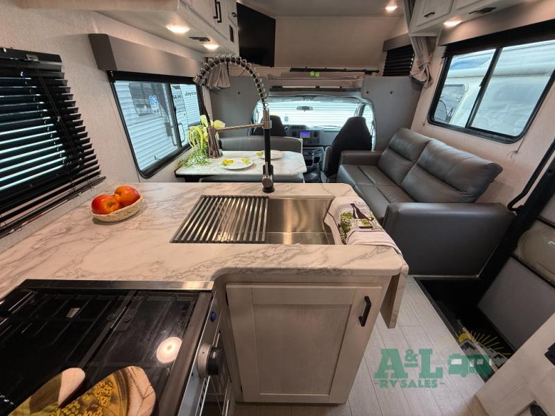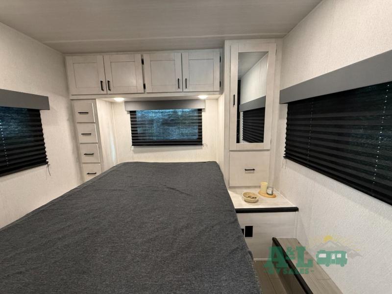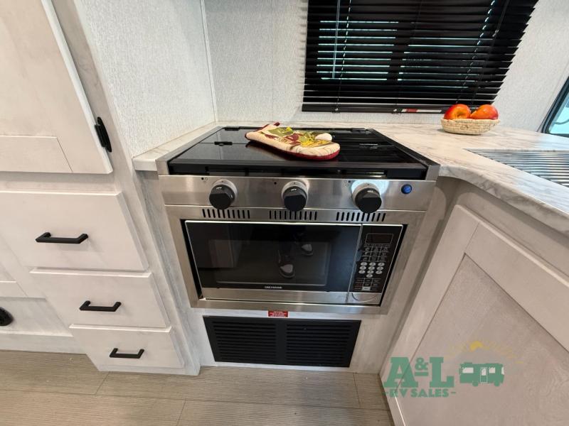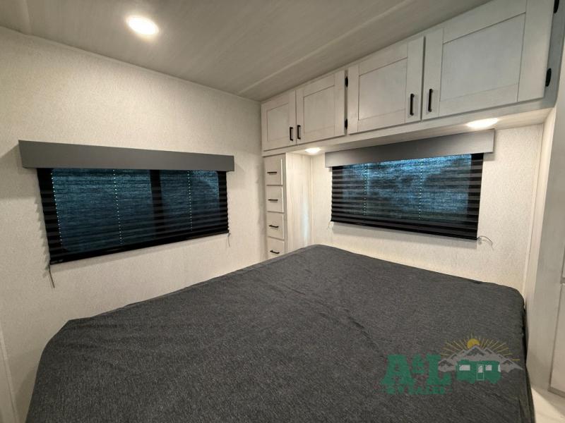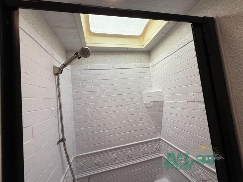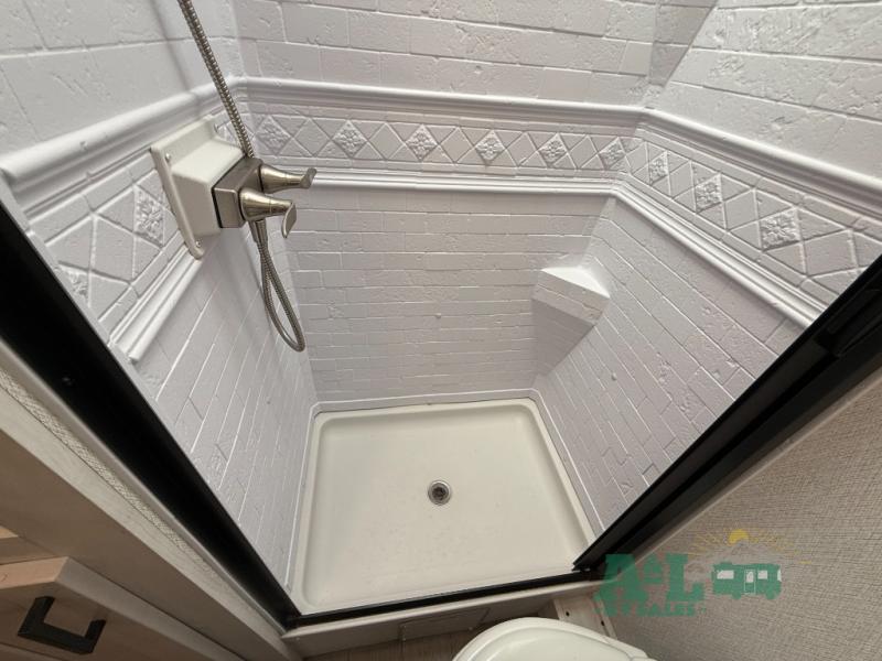When traveling you want comfort no matter if you are driving, riding, or relaxing once at your campsite. Well, you will have it in this coach! There is a 62" sofa and 42" x 68" booth dinette that can be used for lounging together after an afternoon of walking around the campground, plus the bunk over the cab and the queen-size bed can be utilized if you are too tired to stay up for another minute. Once you are fully rested, head to the kitchen to prepare a delicious breakfast feast with the convection microwave, the cooktop, the double sink, and the 10.7-cubic foot refrigerator. You can even add some extra prep space to this area by pulling out the flip-up countertop. There is also storage all throughout this motorhome with the bedside closets, the bathroom shelves, the kitchen pantry, cab storage, and the overhead cabinets.