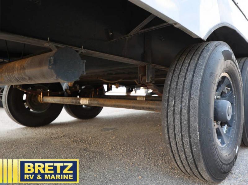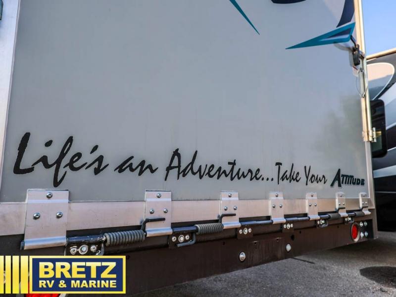 With each Eclipse Attitude Wide Lite toy hauler you begin with a powder coated chassis with laminated, aluminum framed fiberglass sidewalls and fiberglass caps with the front cap having an LED light, and a decked walk-on roof. The 100 AMP lithium LiFePO4 battery/330 watt solar panel, the 40 gallon fuel station, and the 4.0K Onan generator with transfer switch will keep everything up and running when you venture off-grid. The interior offers several colors to choose from to customize your toy hauler, LED lights with a dimmer, versatile sleeping accommodations, and a lighted solid surface galley top. The Hi Rez LED lights, the curbside under glow LED lighting and the Hi Def exterior graphics offer the attitude you are looking for! Make your selection today!