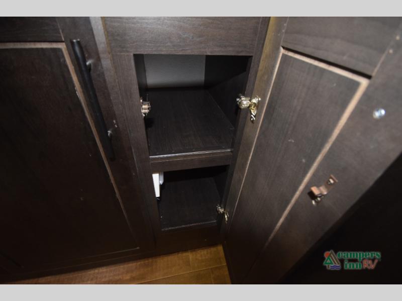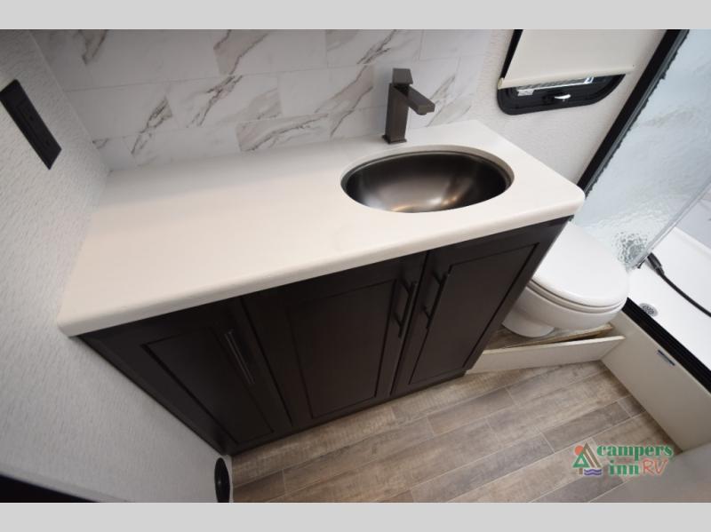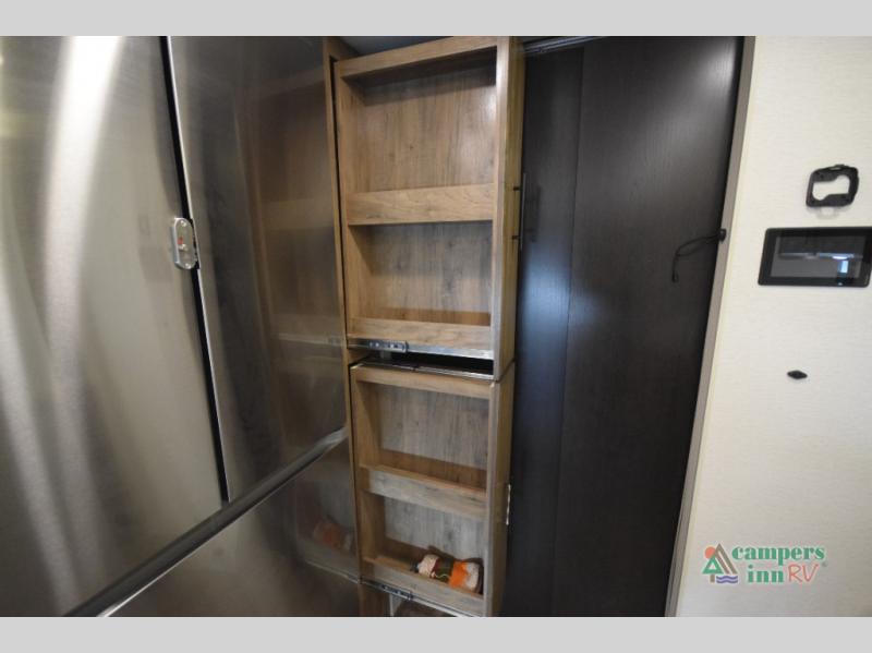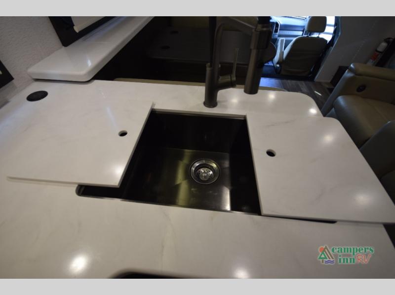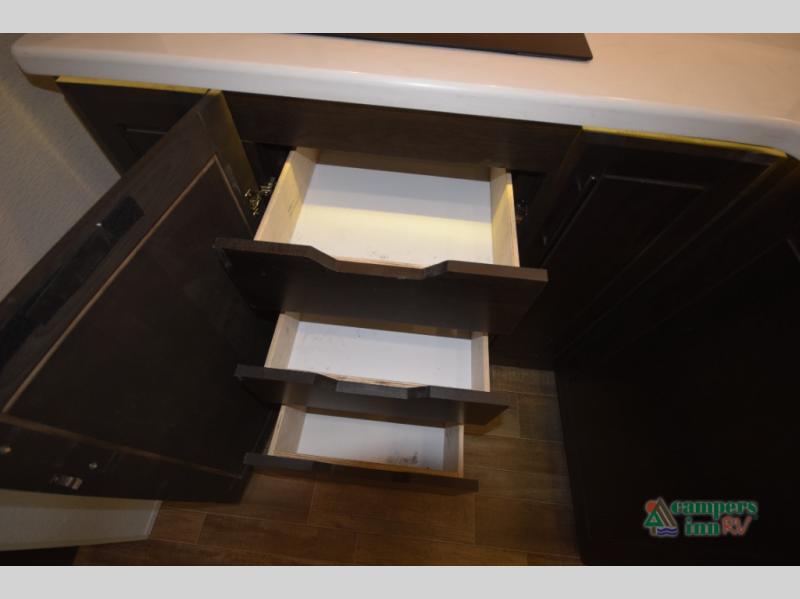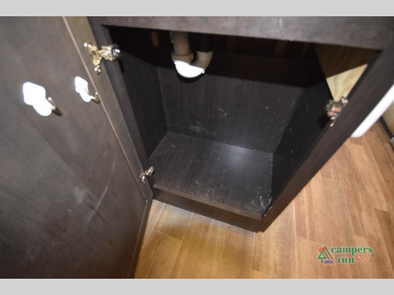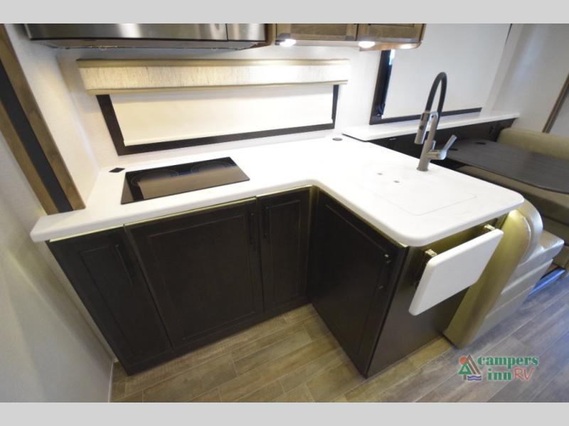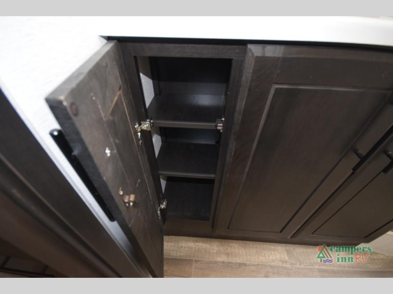 The well-designed kitchen features an L-shaped countertop, giving you extra space for meal prep while maximizing floor room. Cook up campground classics with ease, and enjoy the freedom of a layout that feels more like a home than a motorhome.