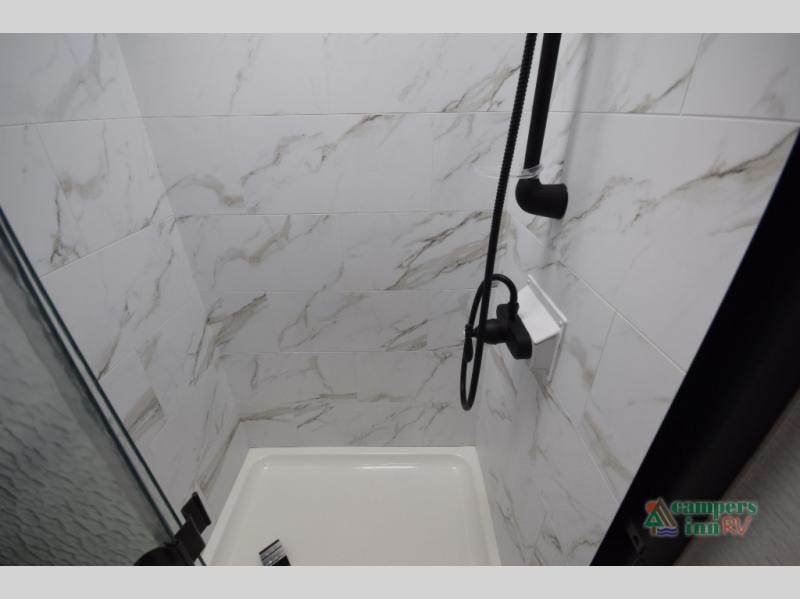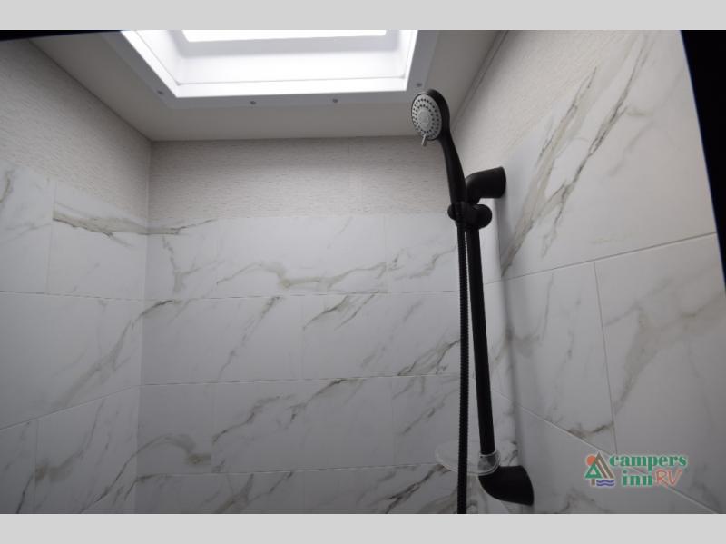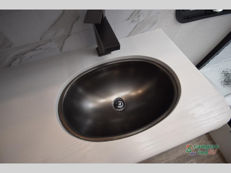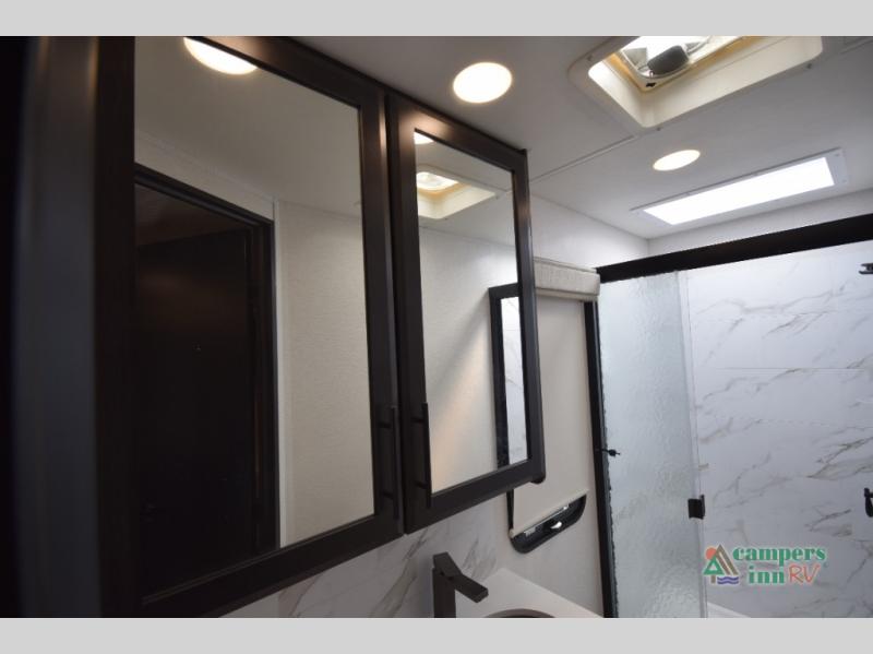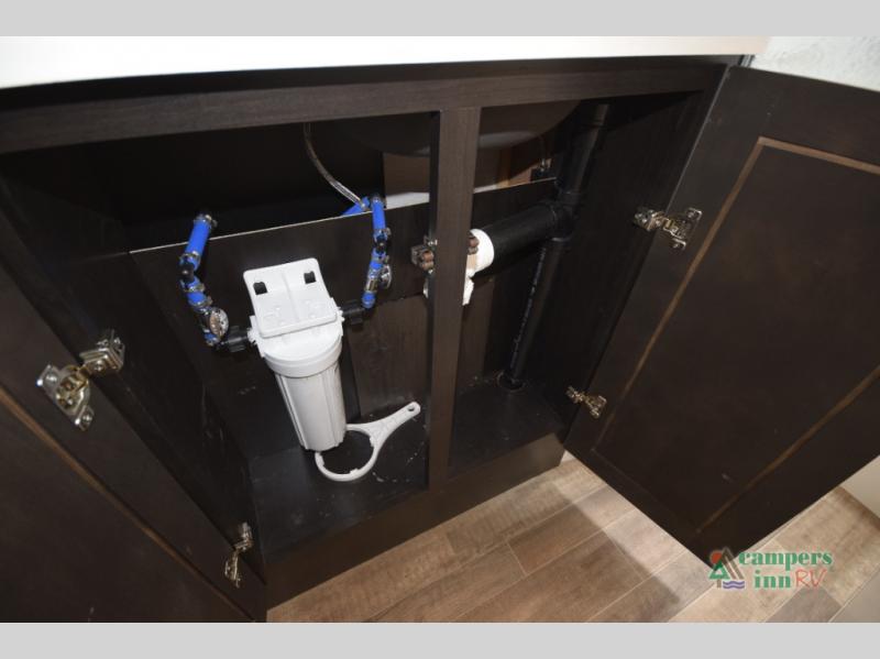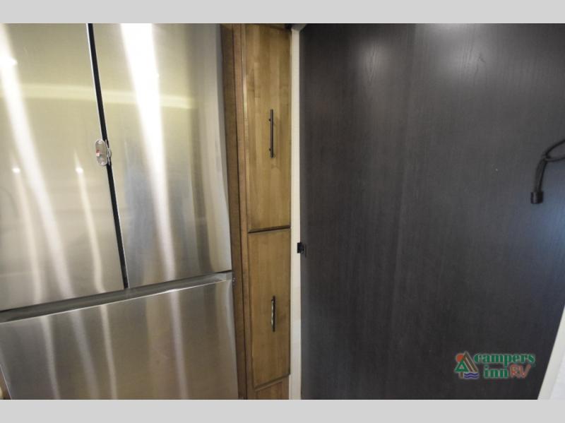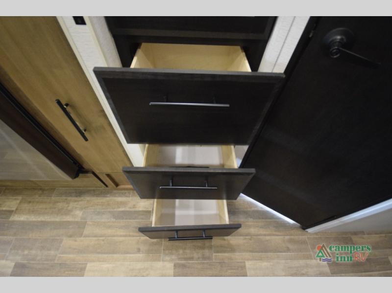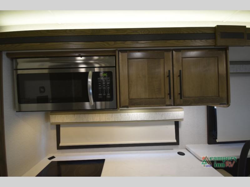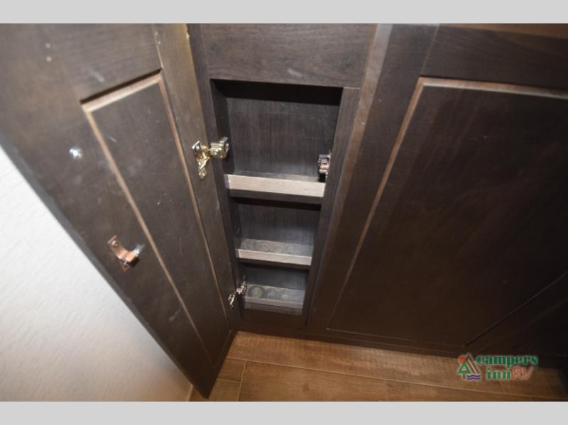 The well-designed kitchen features an L-shaped countertop, giving you extra space for meal prep while maximizing floor room. Cook up campground classics with ease, and enjoy the freedom of a layout that feels more like a home than a motorhome.