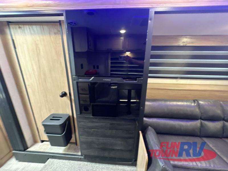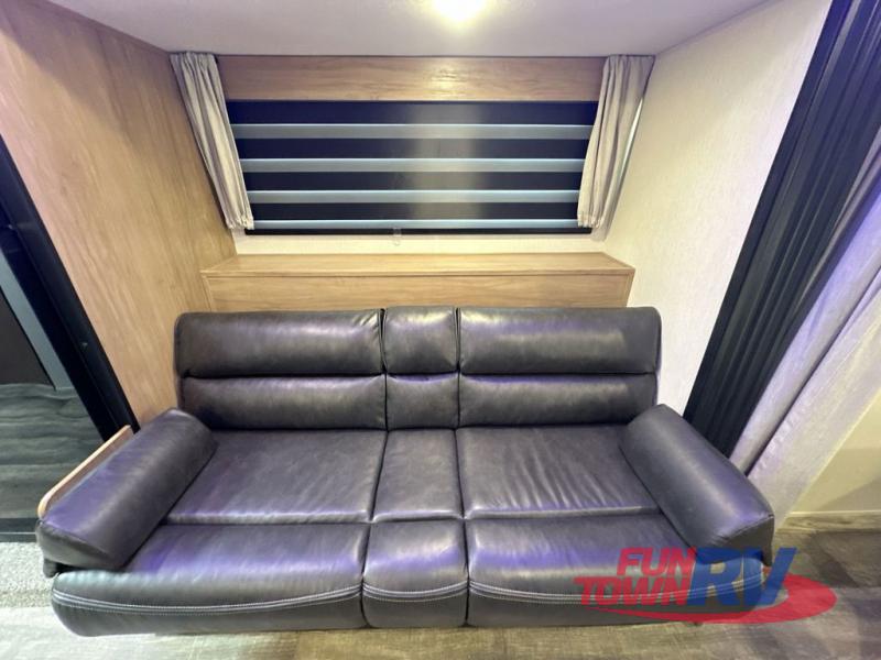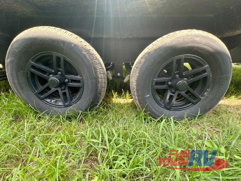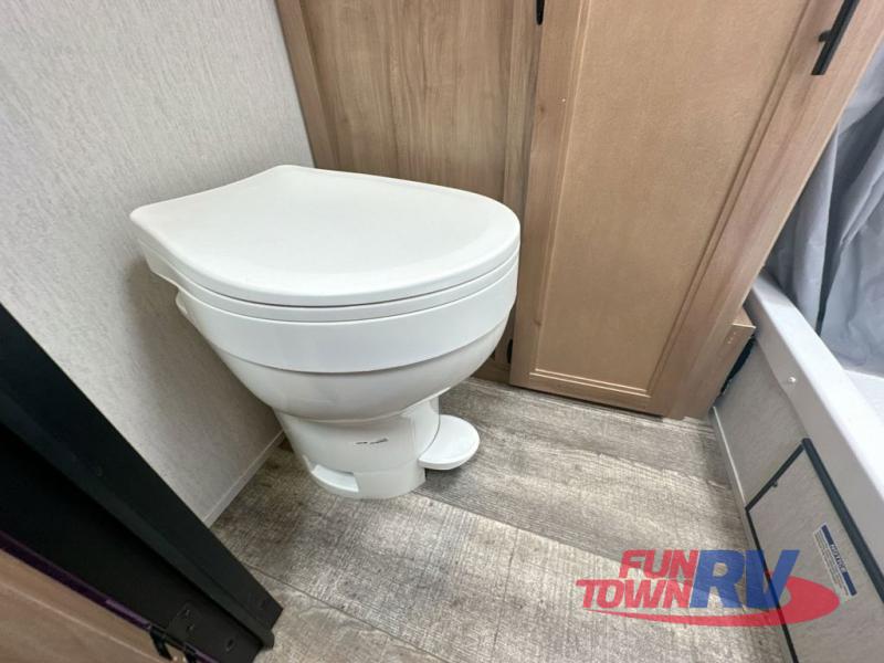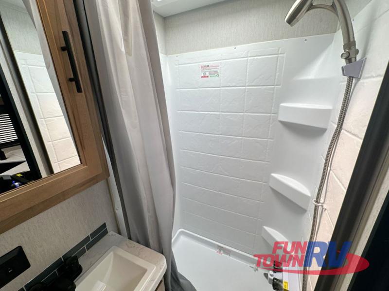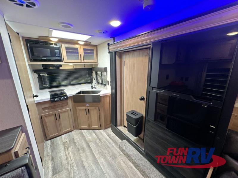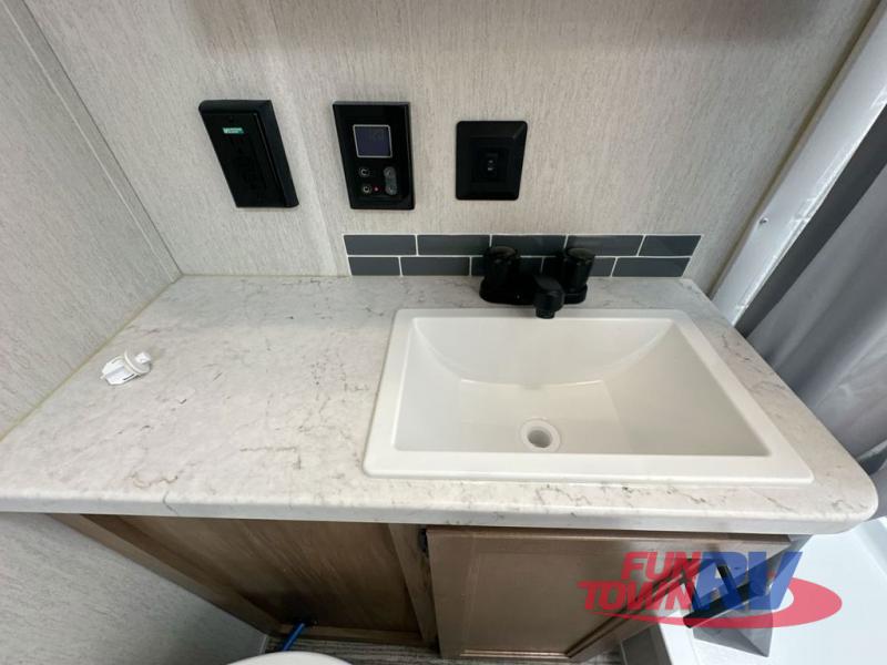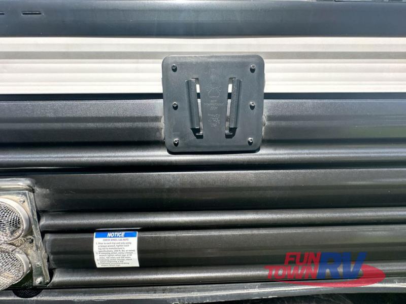 You will love traveling with this Cherokee Grey Wolf in tow. This is a great unit for a couple or family as the booth dinette and sofa can both be used for added sleeping for children or quests if needed. There is a comfortable queen bed up front that you will love for a great night's rest with storage space in nightstands and wardrobes for your clothing and things on either side of the bed. A two burner cooktop and microwave oven is available for cooking inside, and the rear corner bath includes a tub/shower, toilet and sink. A nice 15' awning creates more outdoor living space to enjoy protected from the elements both day and night with an LED light strip for after dark. You can also add a TV on the exterior as it has an outside TV mount.
