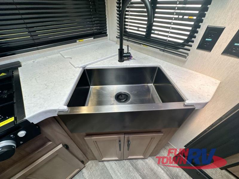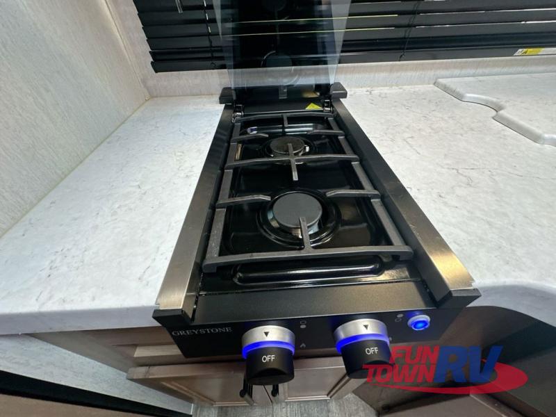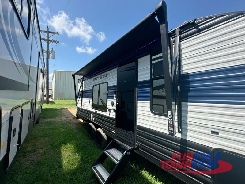 Whether it's a journey that will take you to new locations or a tried-and-true getaway to that favorite and memorable destination, the Forest River Cherokee Grey Wolf travel trailers and toy haulers are going to make the trip worth it every single time! You can travel in confidence with the premium wheel package, seamless roofing membrane with heat reflectivity, Power Gear frame technology with space-saver rail design, and Cherokee back-up camera system. The Cherokee Grey Wolf's interior is highly attractive with its stainless steel kitchen suite package, premium bedding ensemble and comforter, and 8" ceiling-mounted subwoofer with accent lighting. You will also find a black waste tank flush-out kit, an outside shower with hot and cold water, an armored underbelly tank enclosure, a power tongue jack, and an RV grill quick connect.