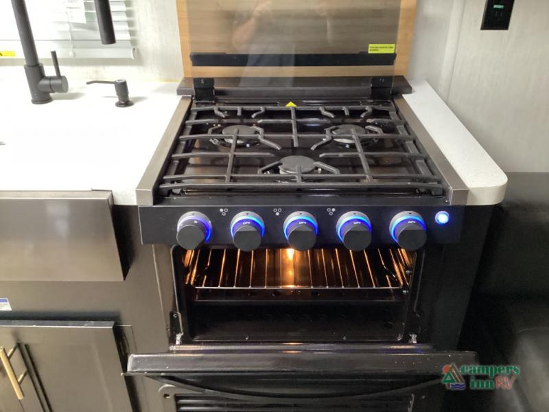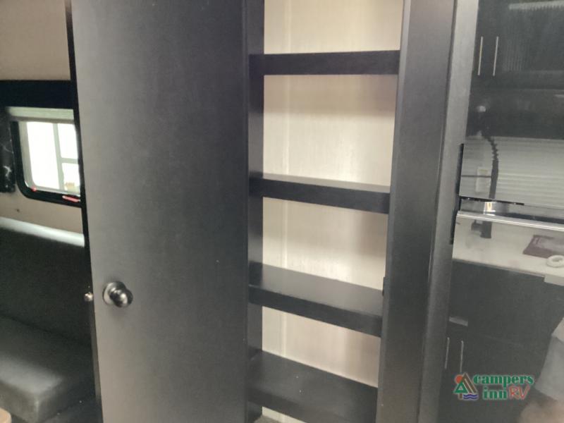 You will love this Cherokee Grey Wolf Black Label toy hauler with a rear ramp door for loading and unloading your toys and gear. If you position the fold-down sofas up against the wall, you will have even more room for extra gear when you are moving down the road. Set up camp and easily create a great dining area with the table between each fold-down sofa. You can also create your best meals in a breeze with either the three-burner cooktop or the oven, plus there is a microwave for those quick meals. A walk-in pantry allows you to pack all of the snacks and canned goods you need for your adventure. You will appreciate the master suite up front for a great night's rest on the queen bed along with easy access into the dual-entry bath.