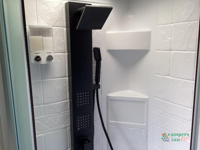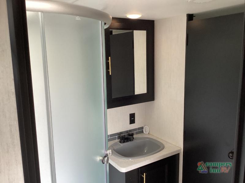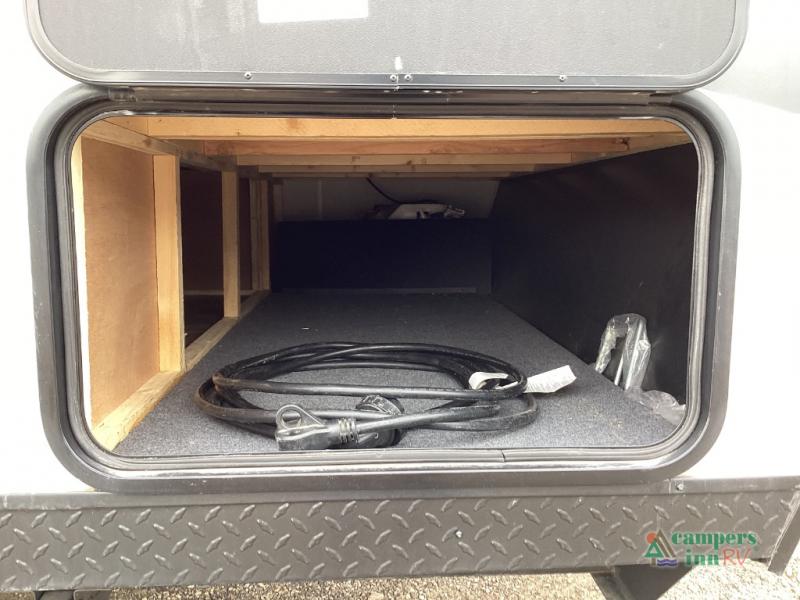 The Forest River Cherokee Grey Wolf Black Label travel trailers and toy haulers are attractive, enticing, and absolutely eye-catching! The Black Label comes with some features that are specifically unique to its name tag, like the hung fiberglass sided walls, solid surface countertops, designer cushion fabric, and a frameless window package. You can travel in confidence with the premium wheel package, seamless roofing membrane with heat reflectivity, Power Gear frame technology with space-saver rail design, and Cherokee back-up camera system. The Cherokee Grey Wolf's interior is highly attractive with its black stainless steel kitchen suite package, premium bedding ensemble and comforter, and 8" ceiling-mounted subwoofer with accent lighting. You will also find a black waste tank flush-out kit, an outside shower with hot and cold water, an armored underbelly tank enclosure, an on demand tankless water heater, and an RV grill quick connect.