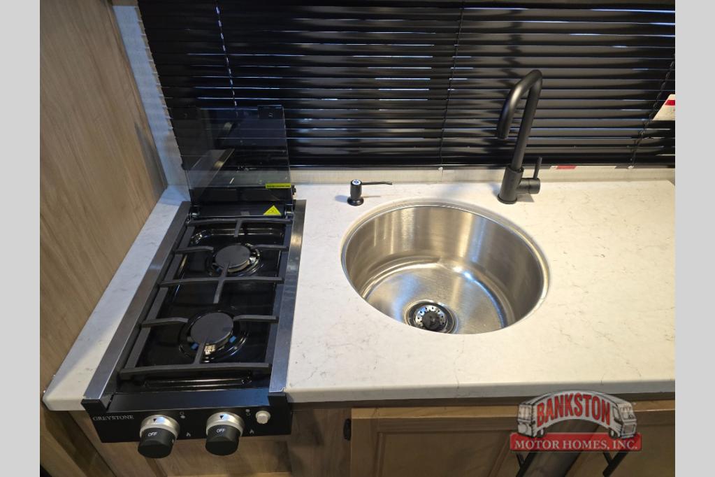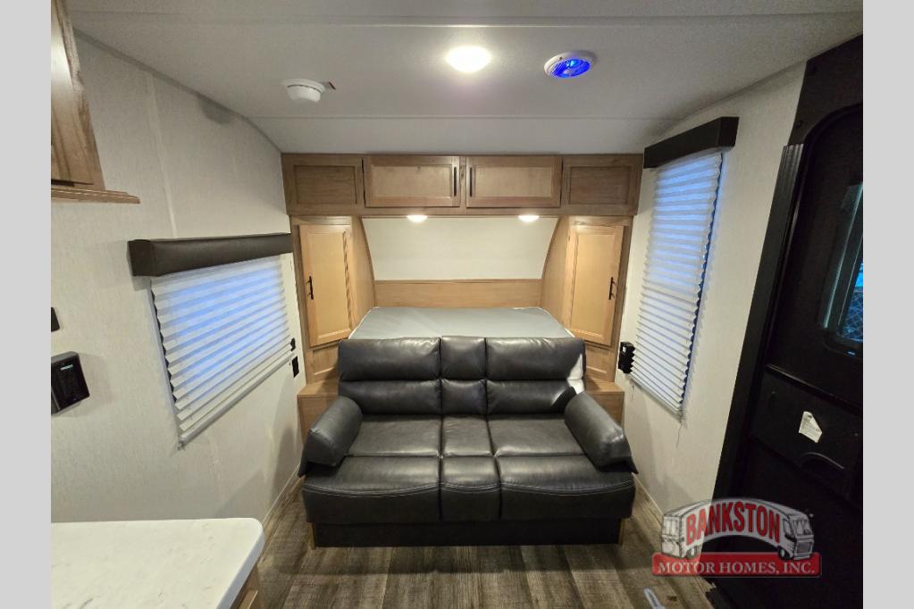 You will experience versatile living in this travel trailer with the Cherokee Sleep System! It lets you easily convert the front queen bed into a comfortable sofa to sit on during the day. Freshen up each morning in the full rear bathroom with the tub/shower and large sink with cabinet storage below it and mirror above it. Fill your bellies with the perishables stored in the 11 cu. ft. Cannon high efficiency refrigerator and cook them on the high output cooktop then enjoy them at the booth dinette. You could even prepare a meal while breathing in some fresh air at the outside mini kitchen while staying protected by the 12' power awning. Easily store all of your outdoor gear in the outside storage area too!