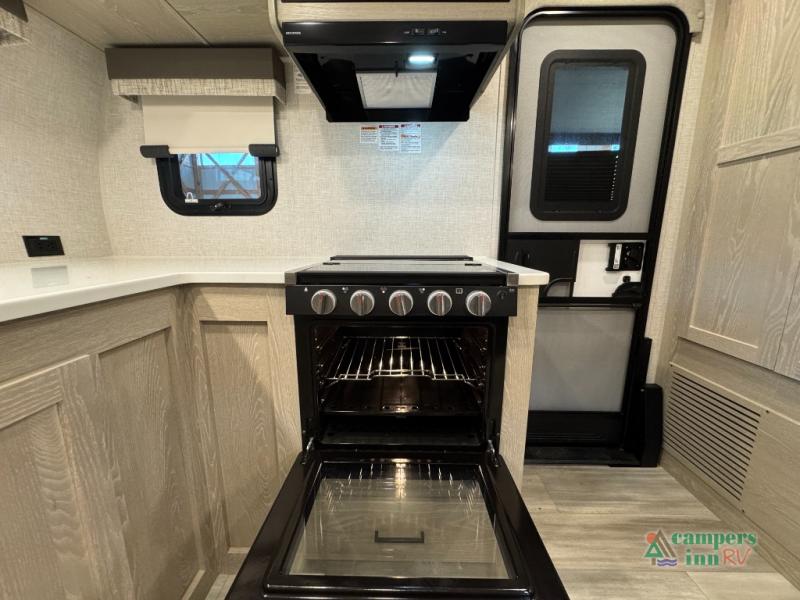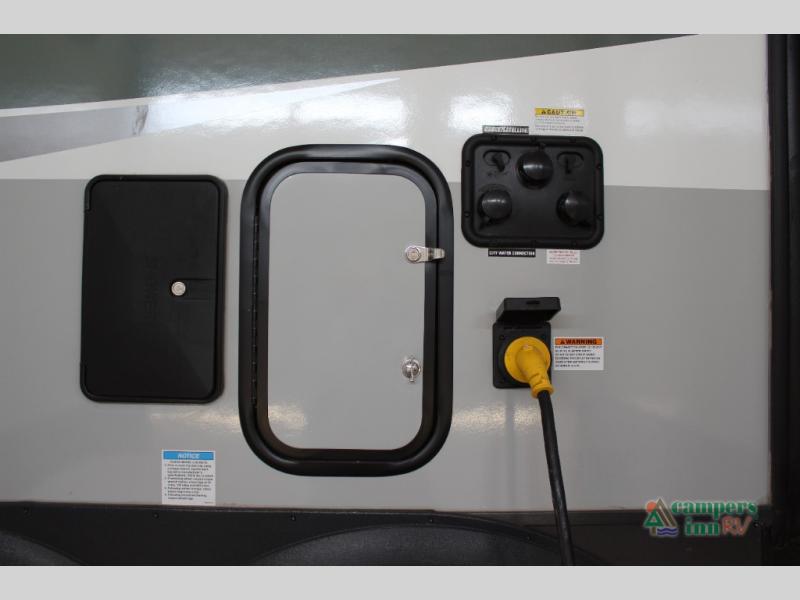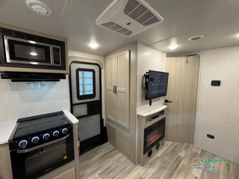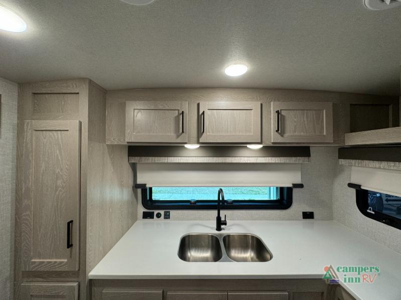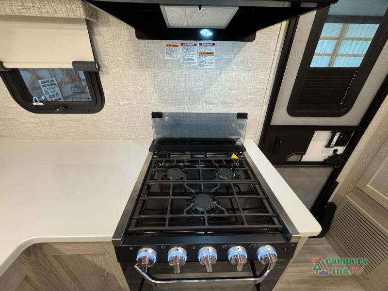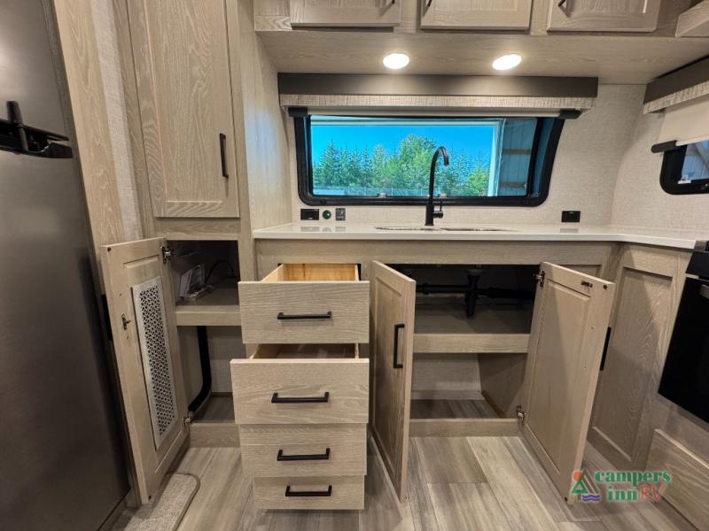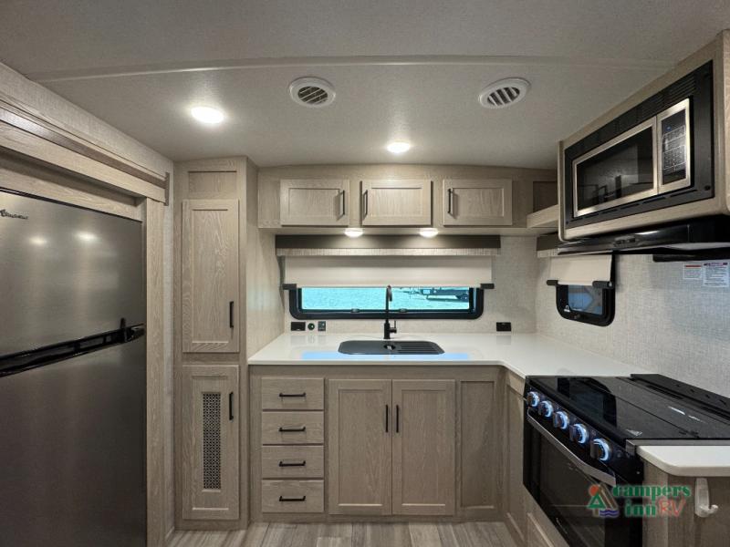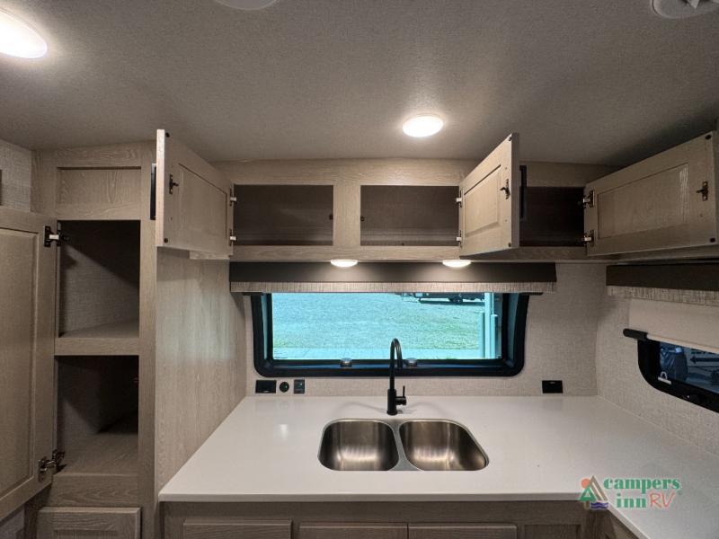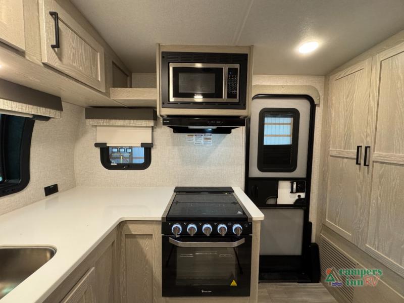 Each Flagstaff Micro Lite travel trailer by Forest River features laminated fiberglass sidewalls, sleek tinted frameless windows, and Azdel composite panels for added strength and support. You can easily tow these travel trailers with an SUV since they are so lightweight, and there is a power tongue jack for quick and easy set up. Some of the convenient amenities you will enjoy are the Teton All-In-One WiFi booster/LTE prep and antenna, the double battery boxes, Key-Alike locks, plus a Maxxair fan with a cover to keep the fresh air moving in your RV. You will love the modern look of the Newport Ash or Autumn Wood cabinetry, plus there are solid wood cabinet doors, solid surface kitchen countertops, and a Showermiser water saving system in the bathroom. Choose a Flagstaff Micro Lite travel trailer and you won't be disappointed!