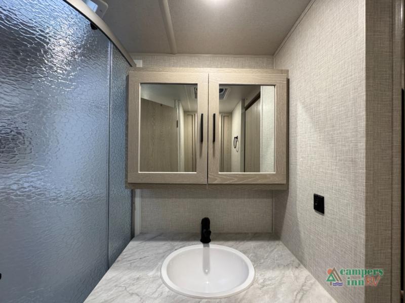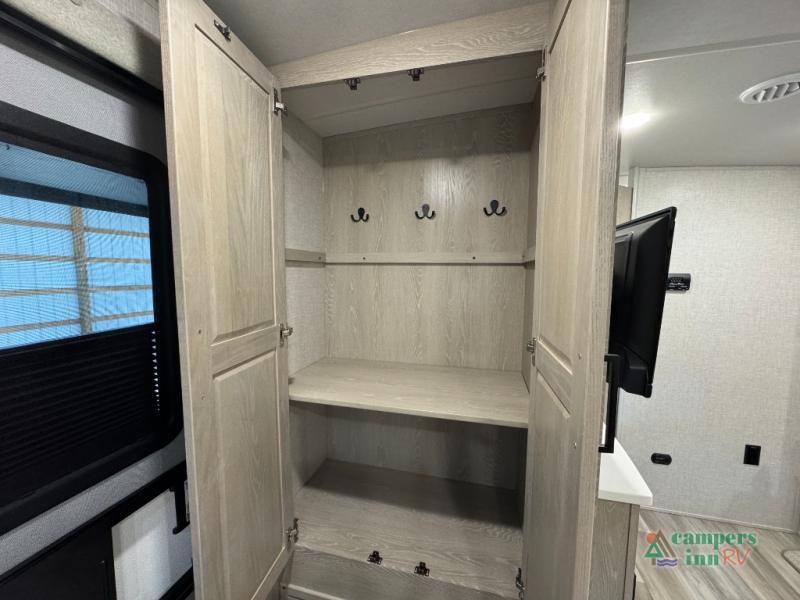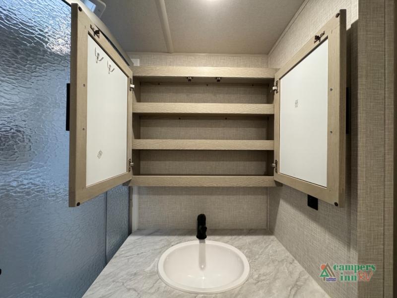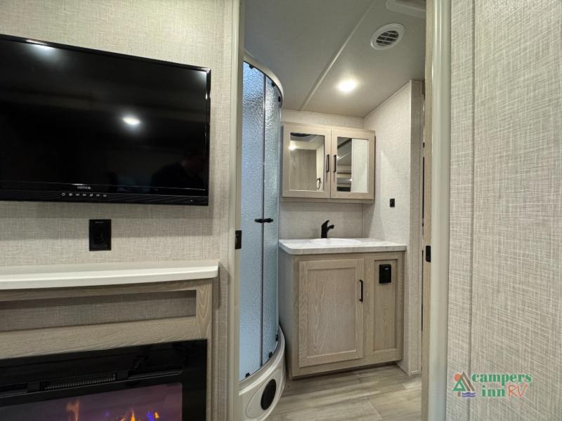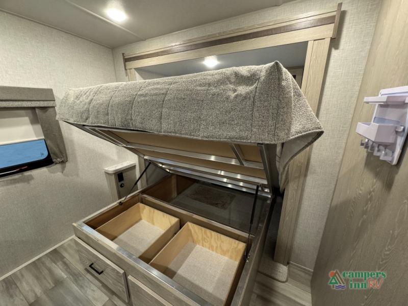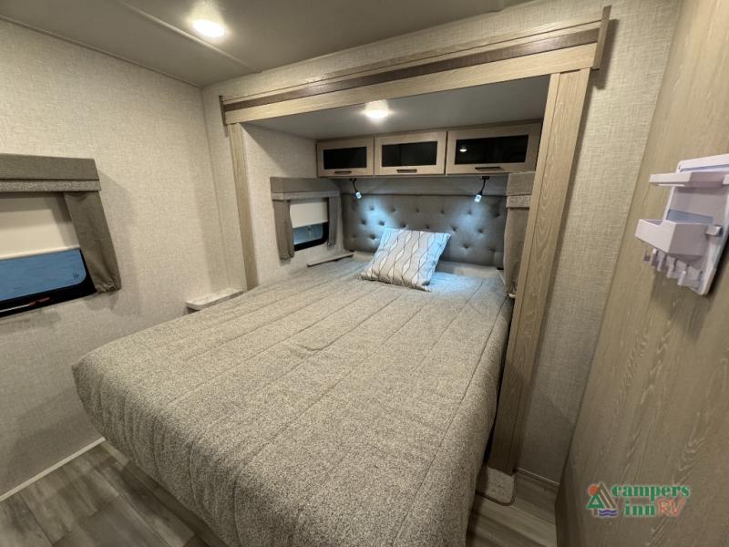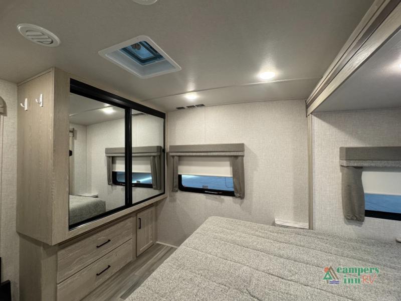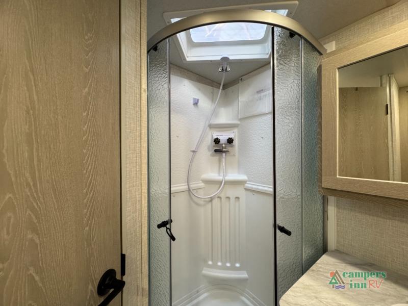 Each Flagstaff Micro Lite travel trailer by Forest River features laminated fiberglass sidewalls, sleek tinted frameless windows, and Azdel composite panels for added strength and support. You can easily tow these travel trailers with an SUV since they are so lightweight, and there is a power tongue jack for quick and easy set up. Some of the convenient amenities you will enjoy are the Teton All-In-One WiFi booster/LTE prep and antenna, the double battery boxes, Key-Alike locks, plus a Maxxair fan with a cover to keep the fresh air moving in your RV. You will love the modern look of the Newport Ash or Autumn Wood cabinetry, plus there are solid wood cabinet doors, solid surface kitchen countertops, and a Showermiser water saving system in the bathroom. Choose a Flagstaff Micro Lite travel trailer and you won't be disappointed!