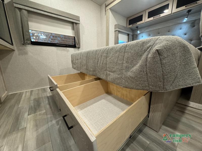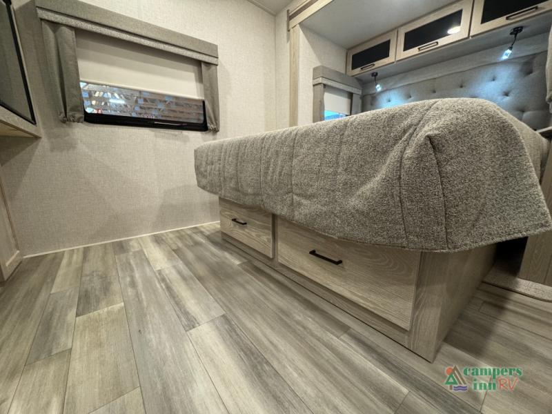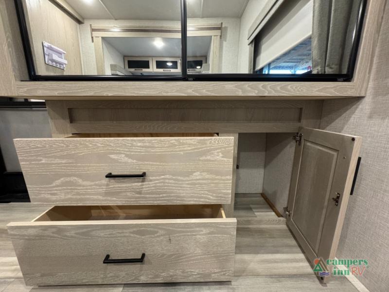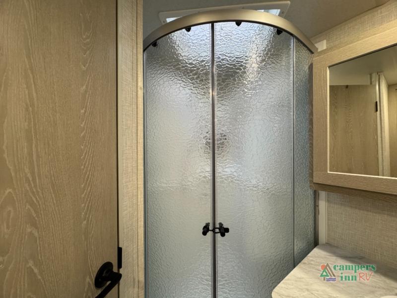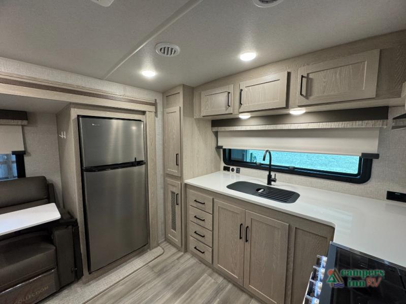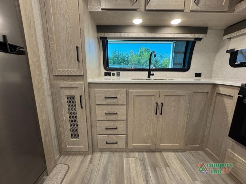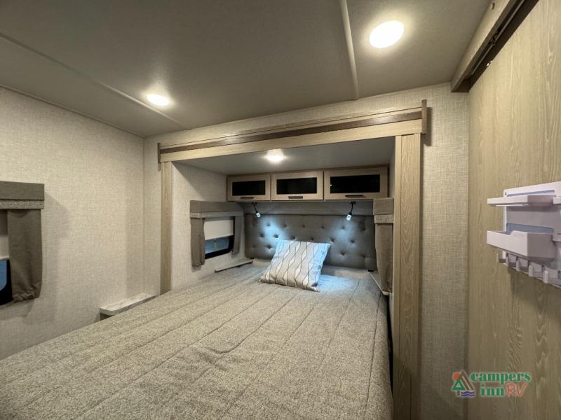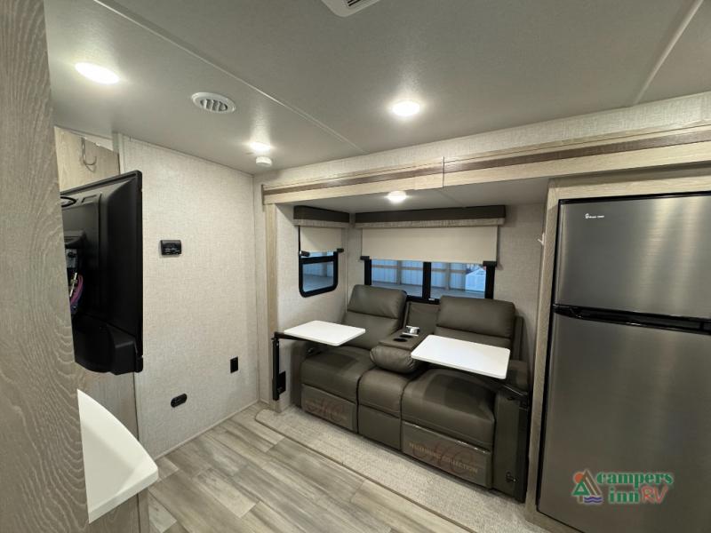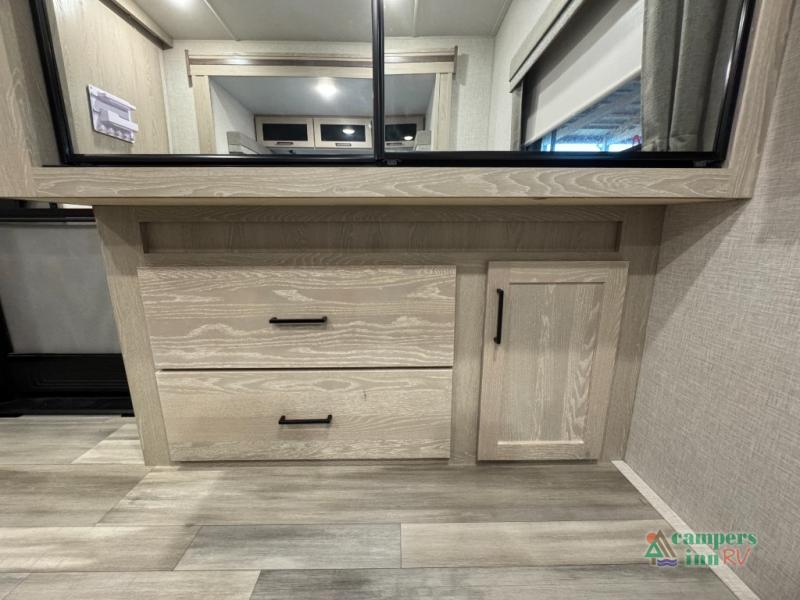 Each Flagstaff Micro Lite travel trailer by Forest River features laminated fiberglass sidewalls, sleek tinted frameless windows, and Azdel composite panels for added strength and support. You can easily tow these travel trailers with an SUV since they are so lightweight, and there is a power tongue jack for quick and easy set up. Some of the convenient amenities you will enjoy are the Teton All-In-One WiFi booster/LTE prep and antenna, the double battery boxes, Key-Alike locks, plus a Maxxair fan with a cover to keep the fresh air moving in your RV. You will love the modern look of the Newport Ash or Autumn Wood cabinetry, plus there are solid wood cabinet doors, solid surface kitchen countertops, and a Showermiser water saving system in the bathroom. Choose a Flagstaff Micro Lite travel trailer and you won't be disappointed!