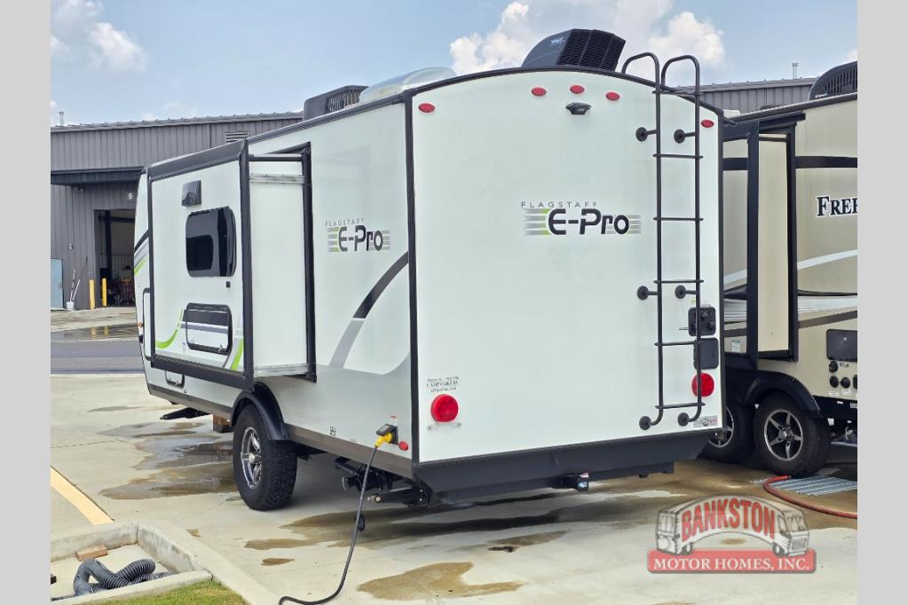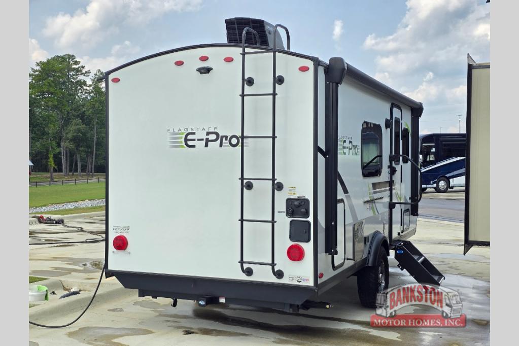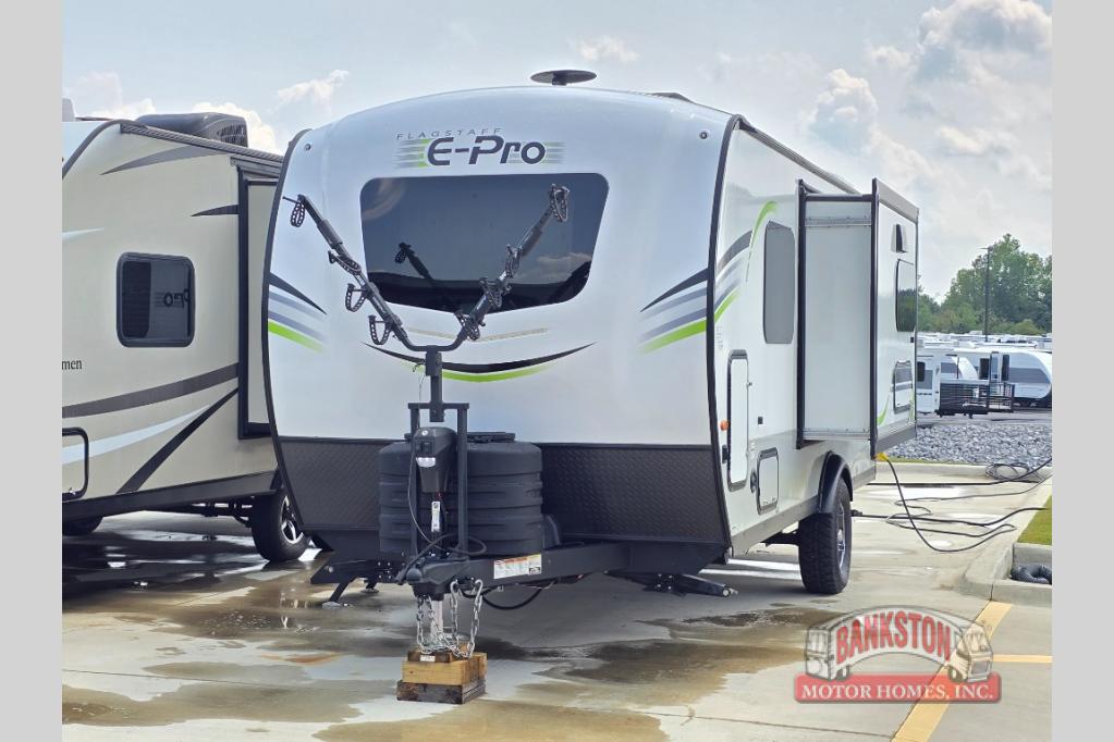 With any Flagstaff E-Pro travel trailer or toy hauler by Forest River, you will experience lightweight towing, style and features that will meet your needs, plus amenities that give you more than you expected! Built with interior and exterior Azdel construction, tongue and grove plywood flooring, and a vacuum laminated roof and walls, plus torsion axle, Rubber-Ryde suspension, and a tire pressure monitoring system for safety while traveling. And the 190-watt roof mount solar panel with 1,000-watt inverter will allow you to stay off-grid if you like. The interior offers a comfortable environment with the choice to use the air conditioner or furnace, and an AM/FM stereo with Bluetooth and USB will allow you to listen to your favorite tunes and keep your cell phone charged. Make your selection today!
