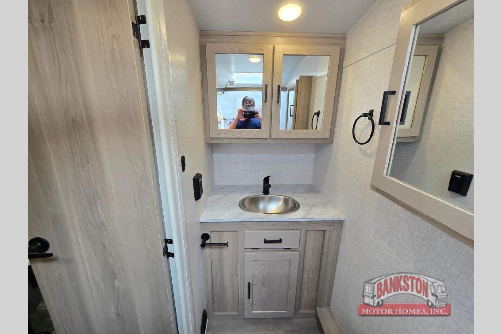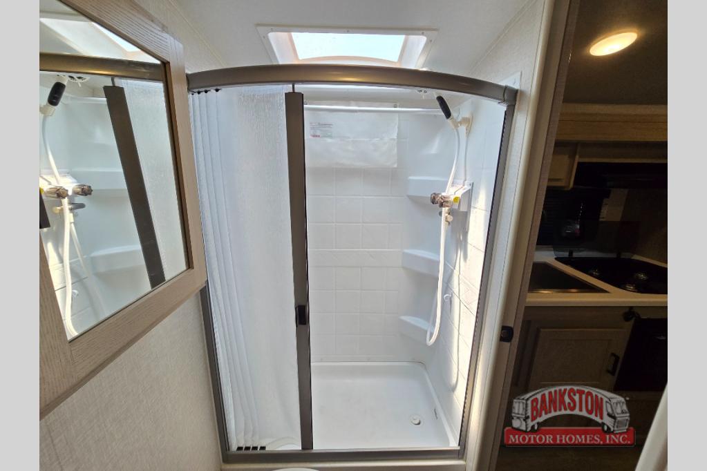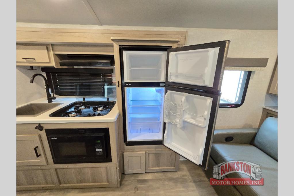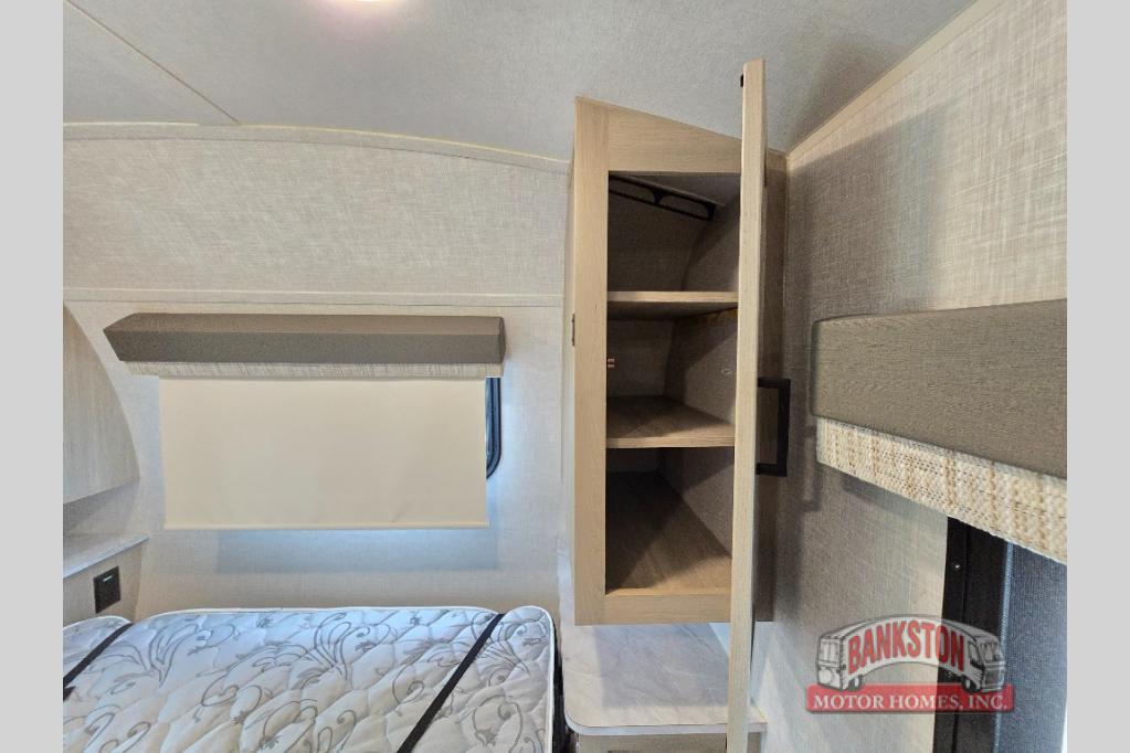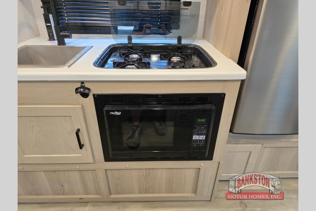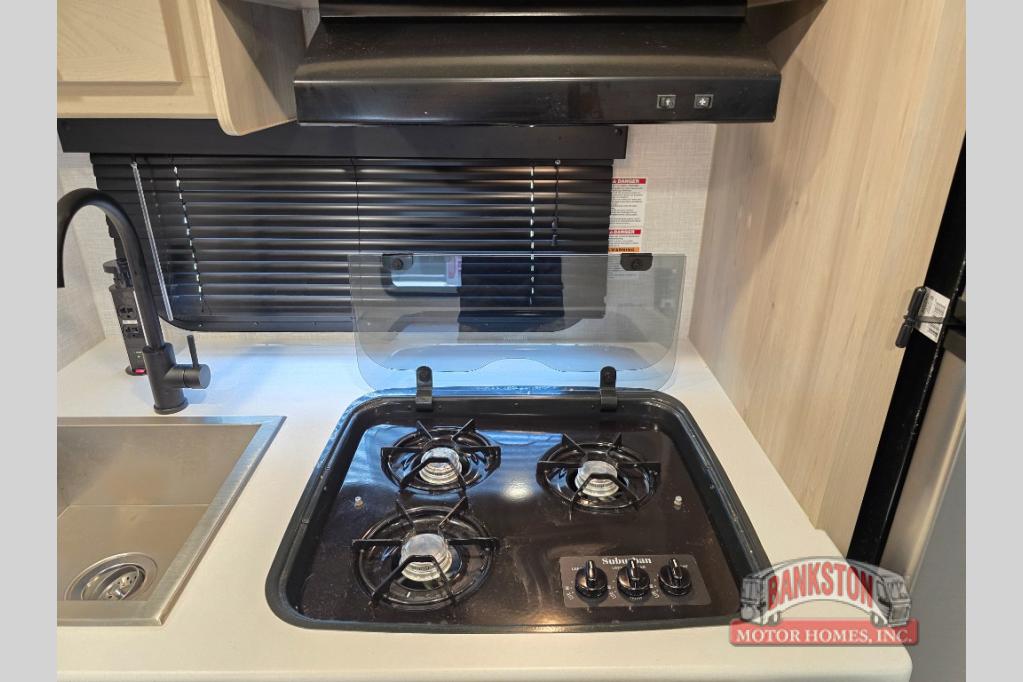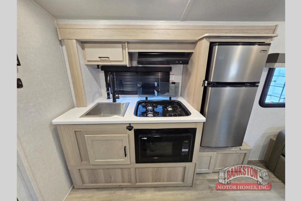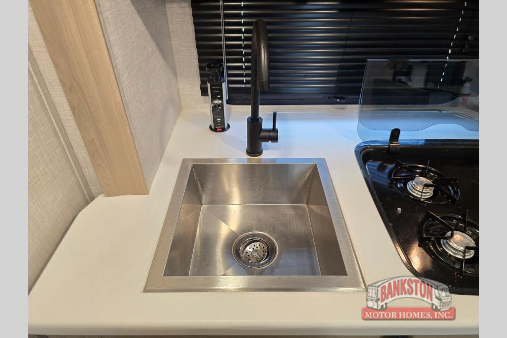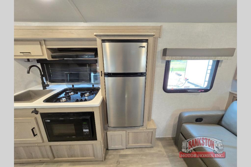 Camp with your favorite person in this trailer with the versatile Murphy bed/sofa combo up front giving you both a living area and a bedroom when you so choose. If you need sleeping space for one more, the dinette will provide that once easily setup. The large window gives you great views while dining or playing games, and the front windshield gives you more views. There is extra floor space in this trailer with the kitchen slide out that offers full amenities plus a sink to keep everything clean. And the full-length rear bathroom offers a spacious area to change your clothes in privacy and get cleaned up in the large shower.